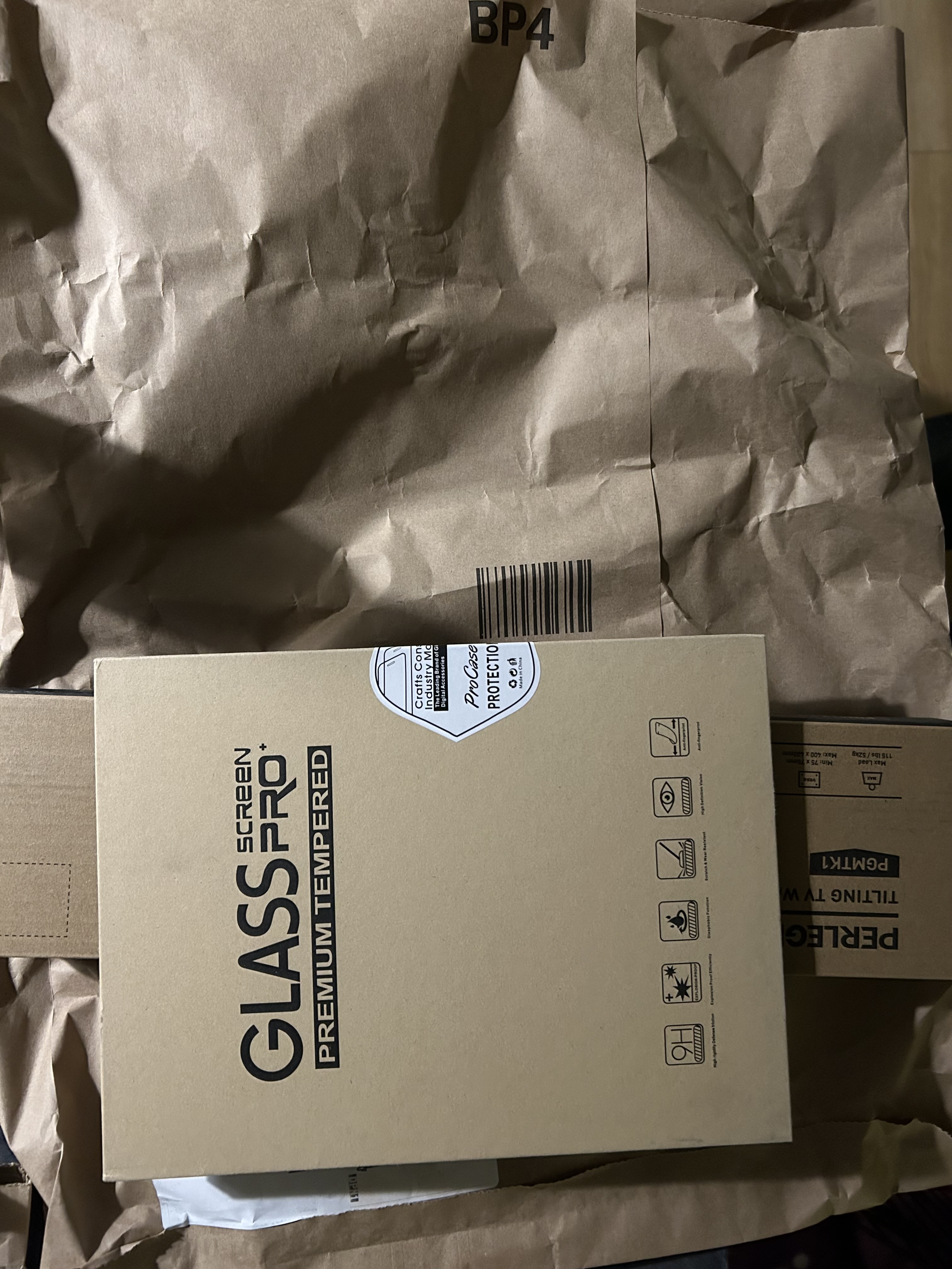 I had a delivery this week of a TV wall bracket and iPad screen protectors which came together in a paper bag. What made it even more crazy was that the screen protector’s packaging had glass printed on in huge letters!