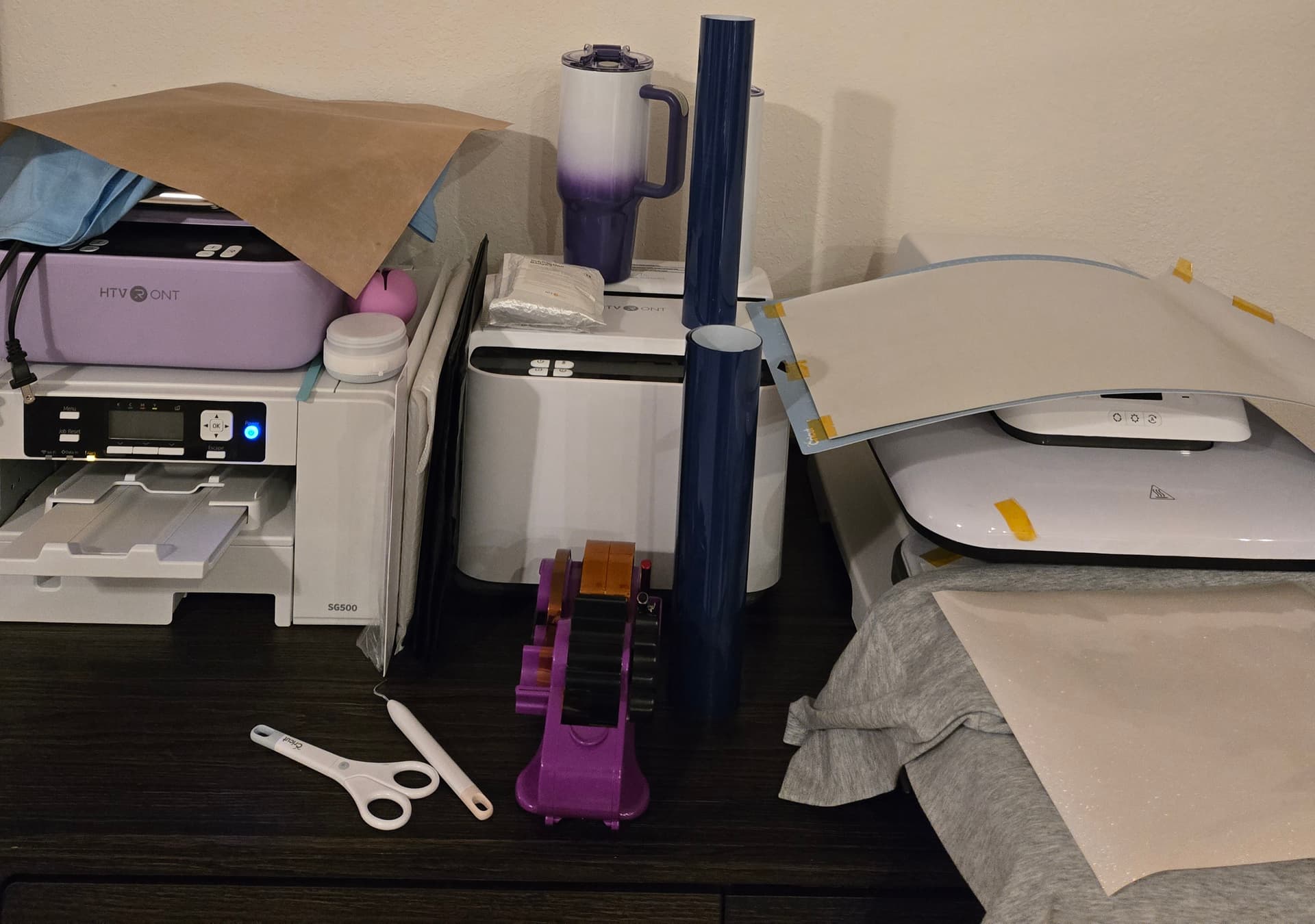 Day 1. Only had 1 day off work this week but managed to get a few shirts done. My desk is a hot mess. I still need to finish reorganizing to make space for all the things. ![]()