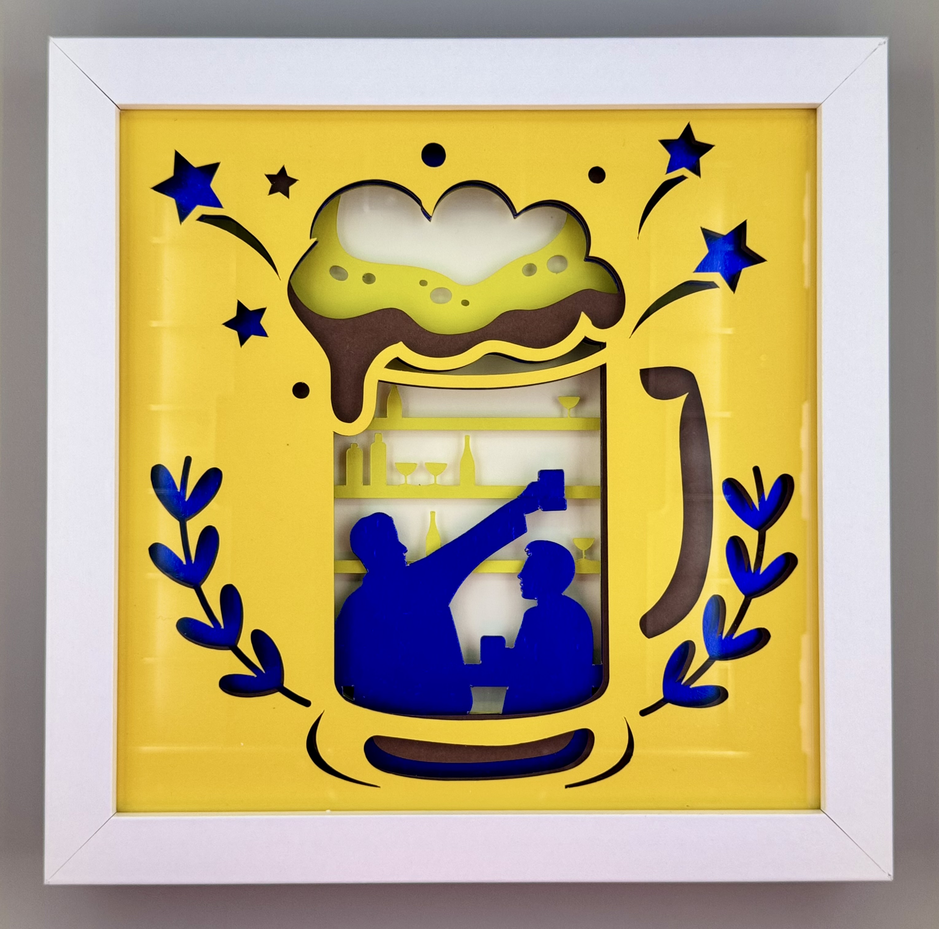 Raise a glass to creativity with Cheers to the Night: A Toast in Layered Paper , where bold colors and playful silhouettes capture the joy of unforgettable nights out. This vibrant shadow box brings the lively spirit of laughter, conversation, and clinking mugs to life through rich layers and glowing contrasts. If you love artwork that feels like a celebration all on its own, this paper toast is one you won’t want to miss.