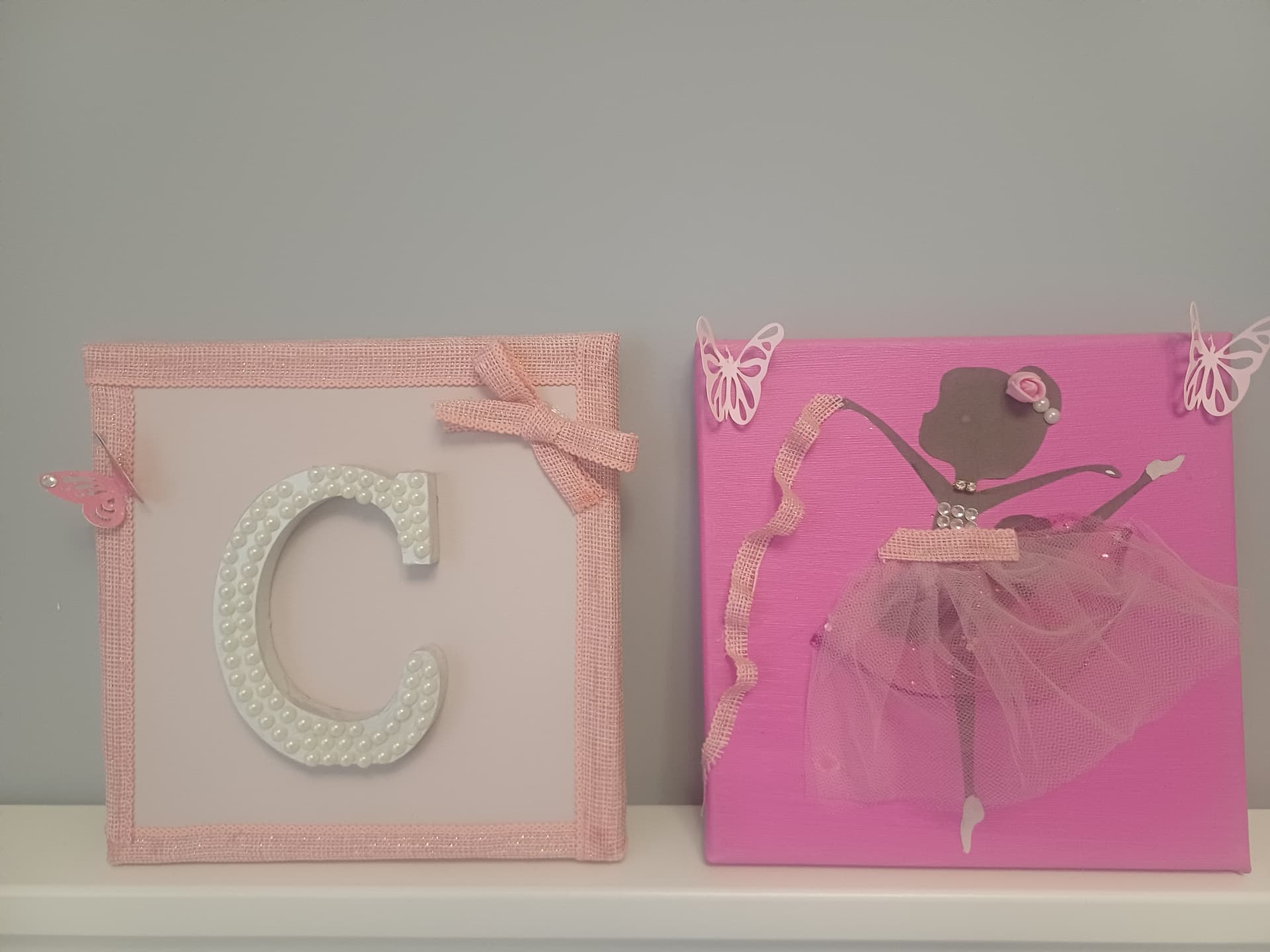 Historia: Estos dos cuadro han sido creados inspirados en mi bella hija, con una dulce bailarina y mariposas que revolotean y bailan al son de la mĂşsica clĂĄsica. Una dulce mĂşsica como la que yo oigo cuando ella me dice: âMamĂĄ, te quieroâ.