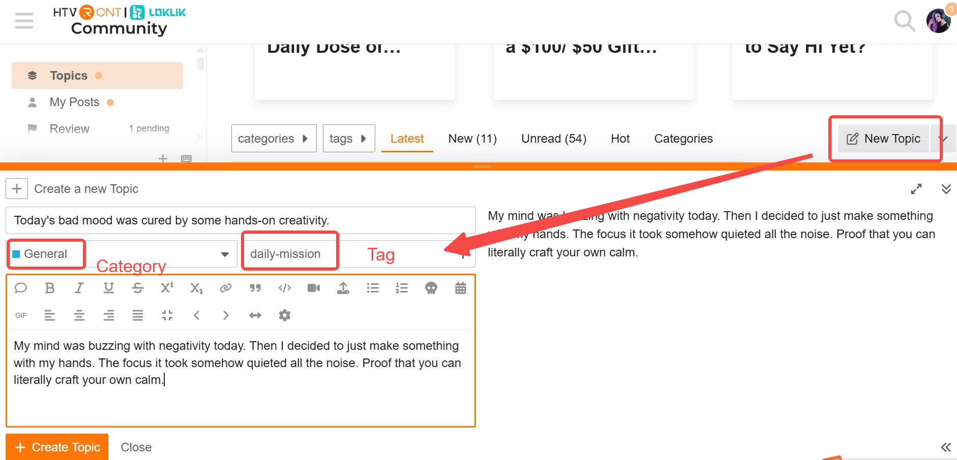 Post your creative content with #DailyMission → Then head to the check-in thread to say hello!