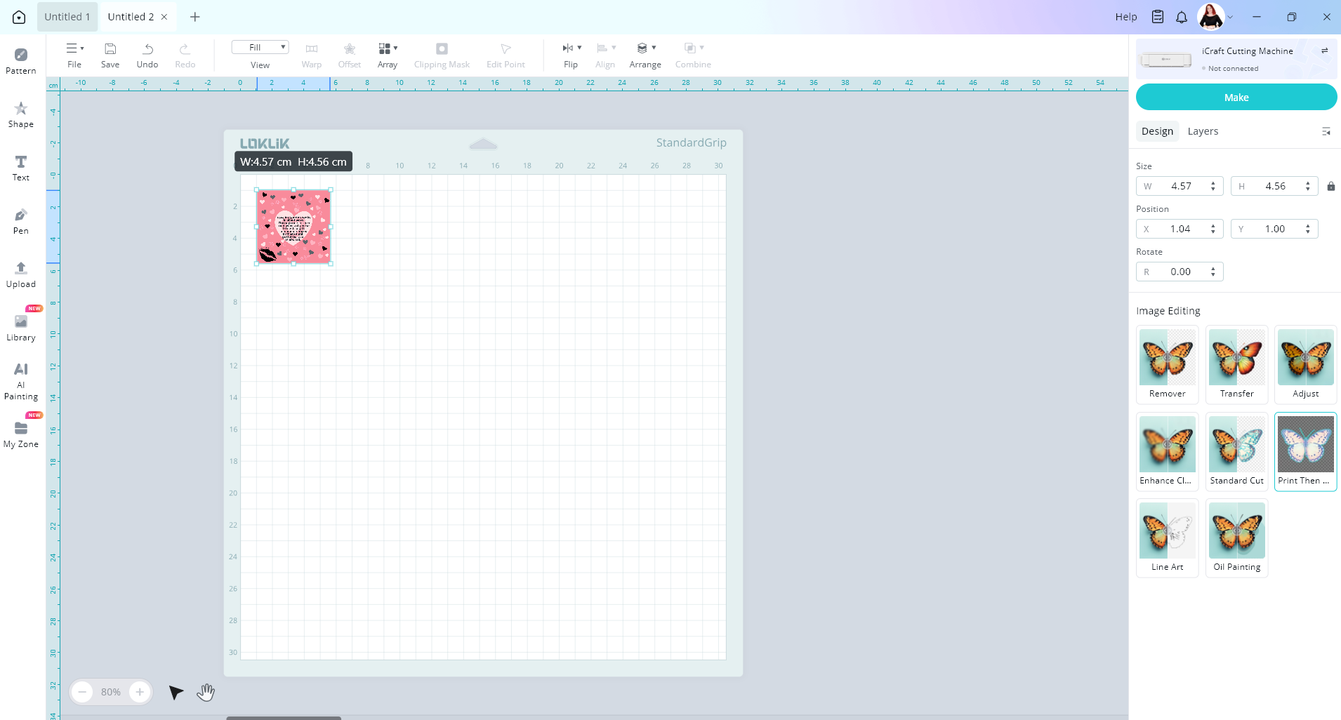 So upload image, then under design tab select print then cut