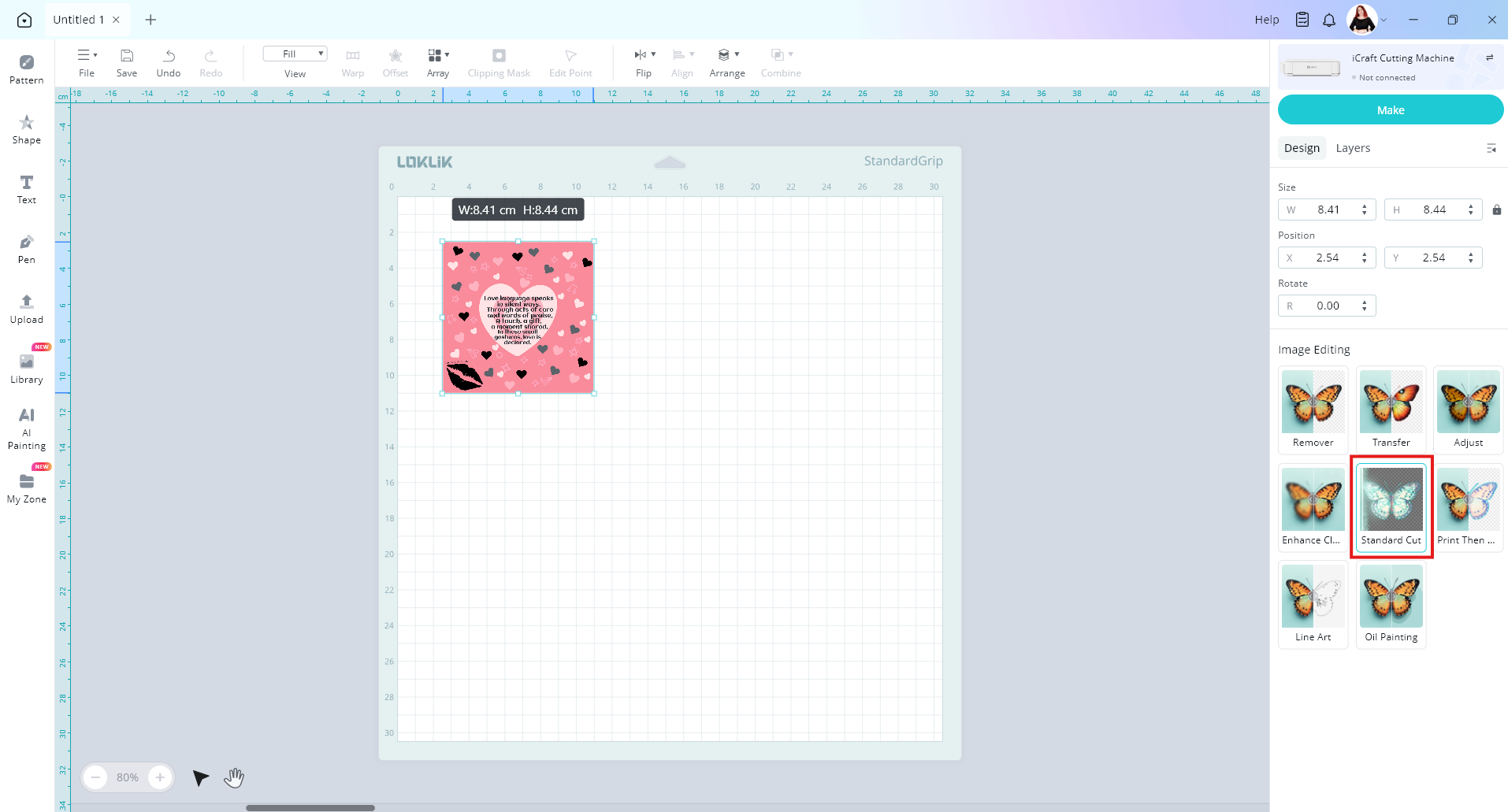From the list you can remove your background by choosing image matting if you want. When your image is ready you can choose Standard cut option. This will change your image from a flat image to an image that is broken up into layers, or a vector image.