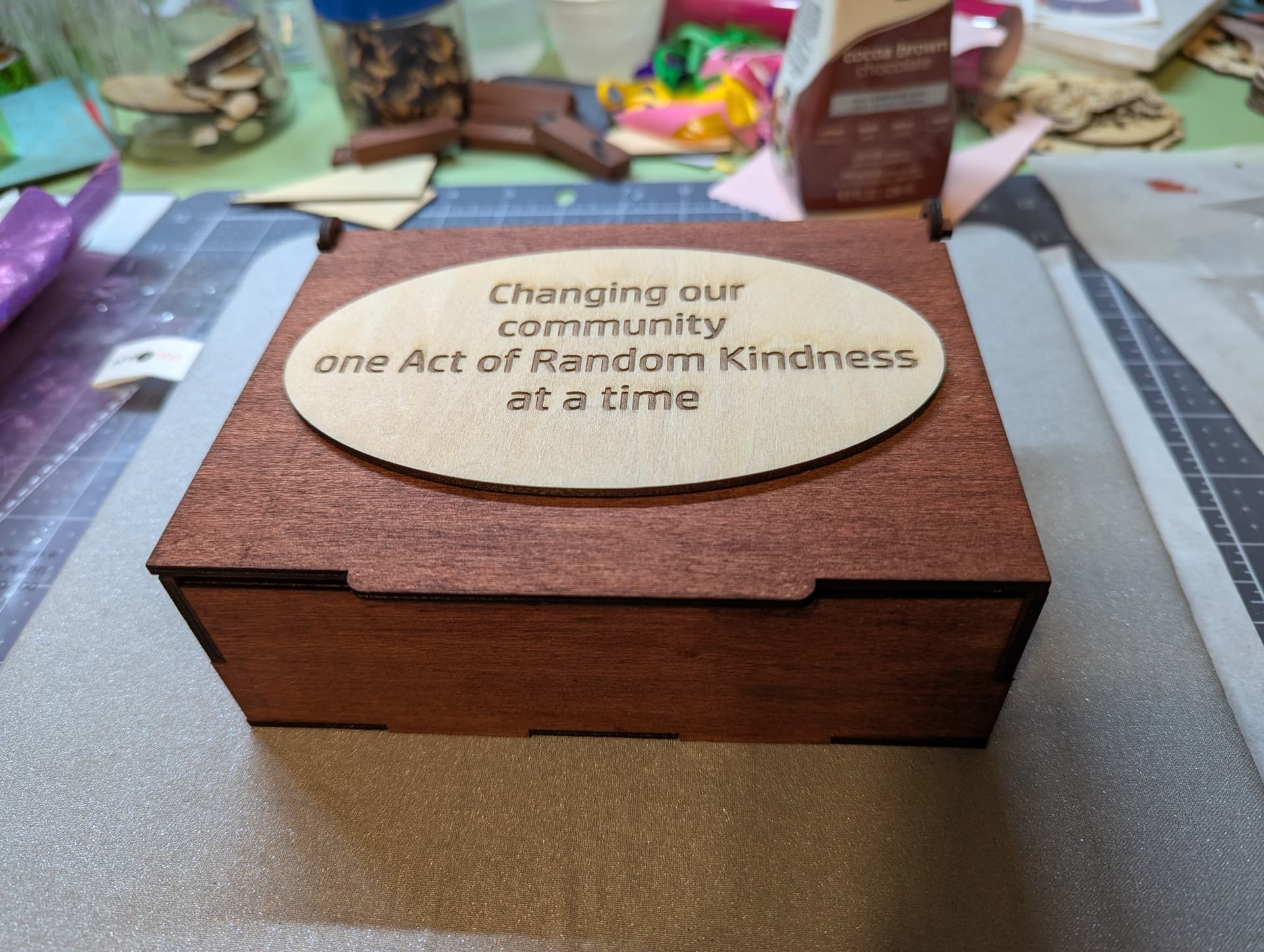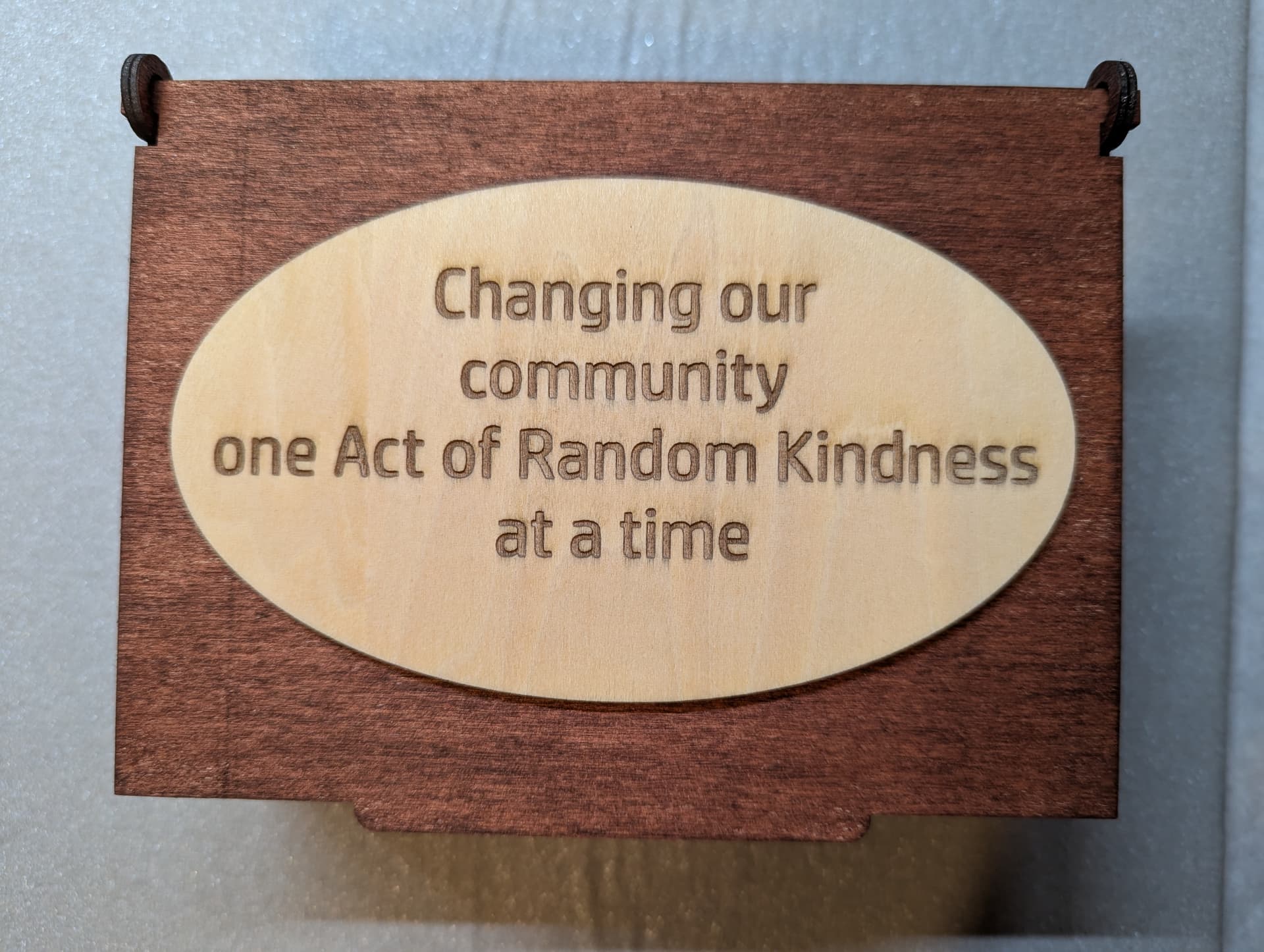 Day 3: I did a twist on the Wedding Guestbook. I worked with a middle school teacher, we’ll call her Hannah, on a way to instill kindness in the minds of her students. In the center are the words ‘Be the Miracle’. Each student was asked to write an act of random kindness on a wood chip and drop it in the box. Each day, Hannah picks out a chip and drops it in the frame and the students work to incorporate that action into their daily lives. Could be as simple as holding the door open for someone or helping to carry groceries for someone. The students have taken on the challenges and Hannah has noticed a change in their attitudes. On the box for the chips, it says ‘Changing our community, one Act of Random Kindness at a time’. I am hoping to get this into more schools and churches and maybe, just maybe, we will see a difference in the world. I hoped to use this in the Project challenge but I would need to recreate everything in the idea studio and just haven’t gotten there, yet.