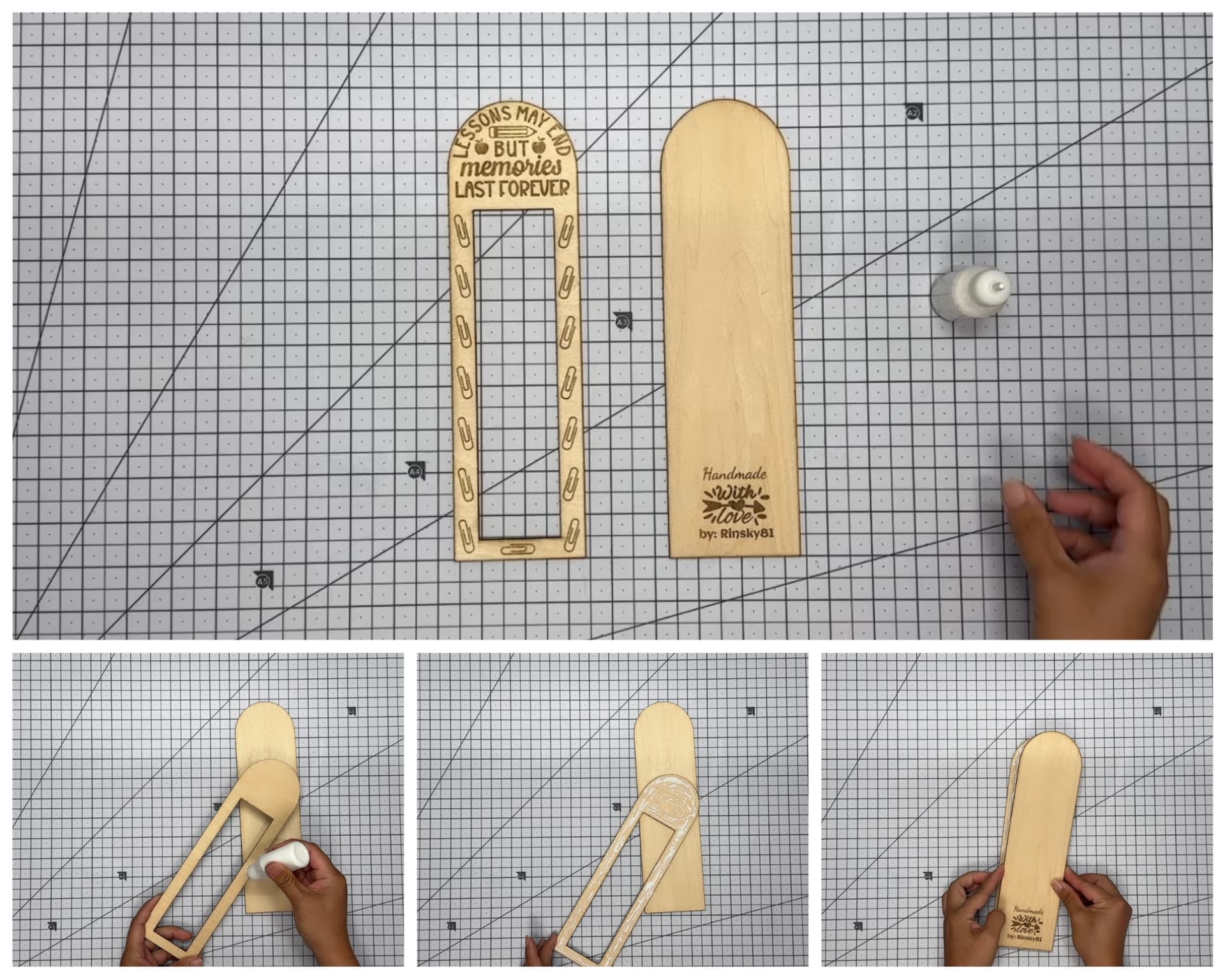 STEP 1 - Grab your front panel and run a generous amount of glue at the back and glue the back panel together. Carefully align the two panels and set them aside. Do the same for the Design B.