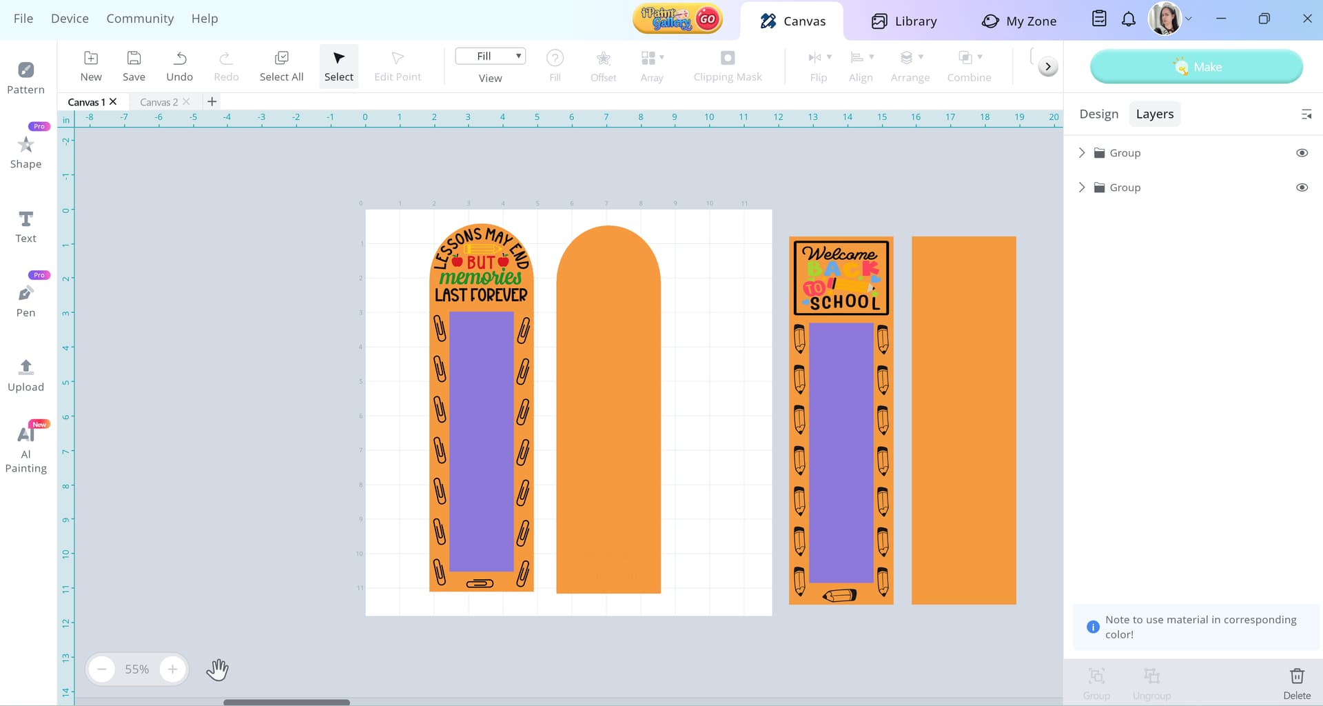 STEP 1 - Upload your back-to-school designs. All of mine came from the IS Library, and I created a pencil holder template that fits six pencils perfectly. We’ll start with Design A.