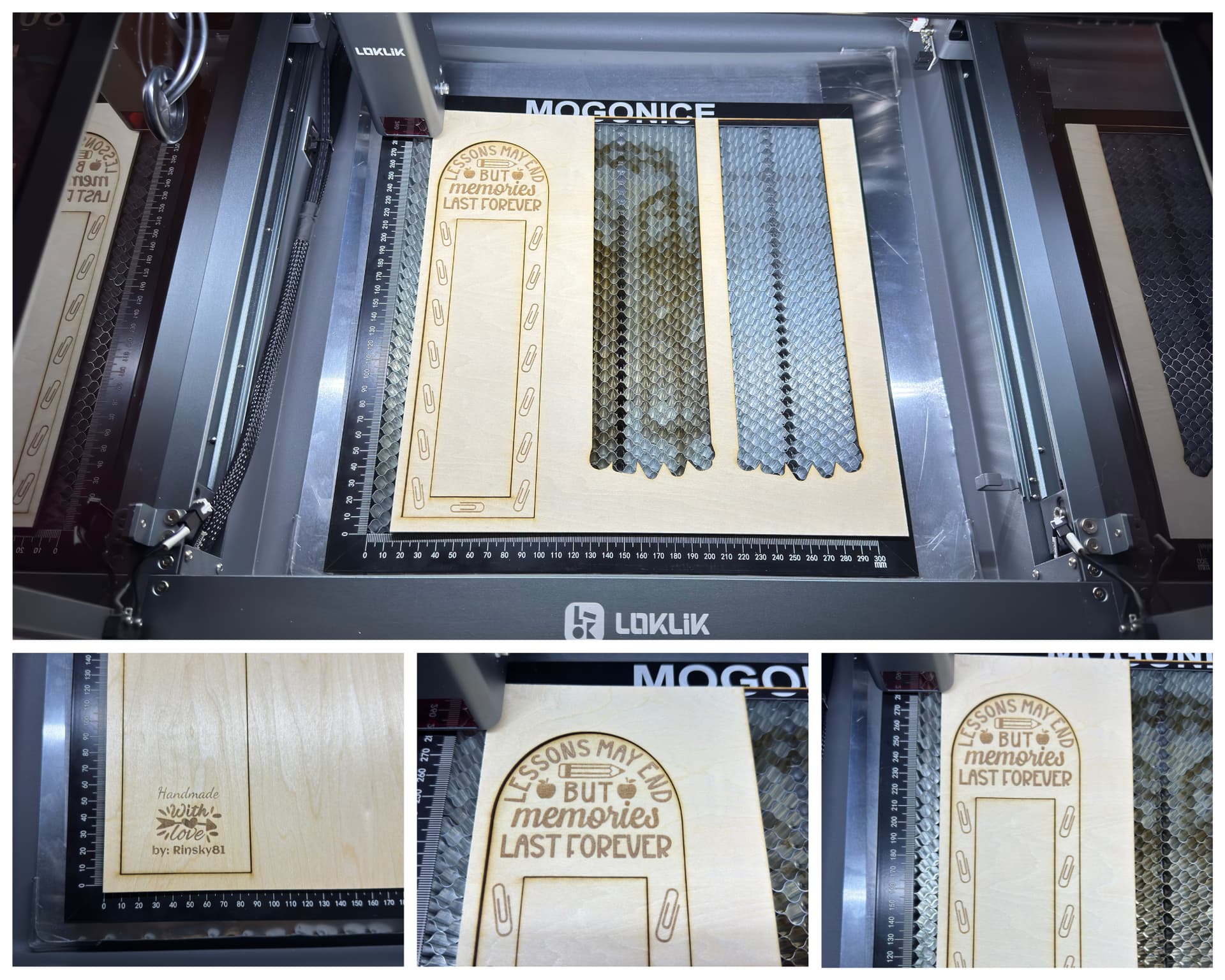 With the same setting parameters above, time spent was 2 minutes and 36 seconds for engraving and 3 minutes and 9 seconds for cutting the back panel.