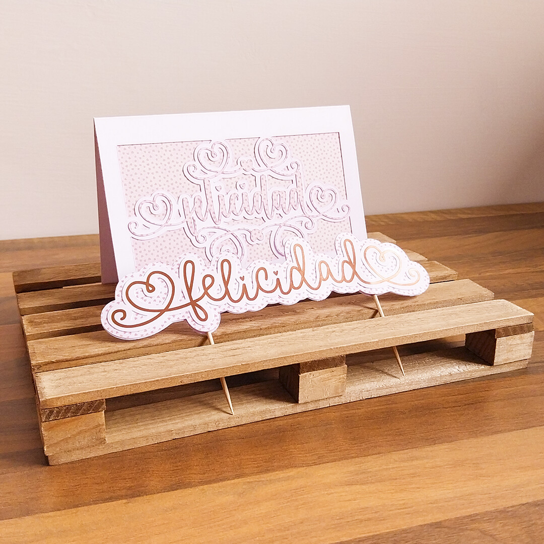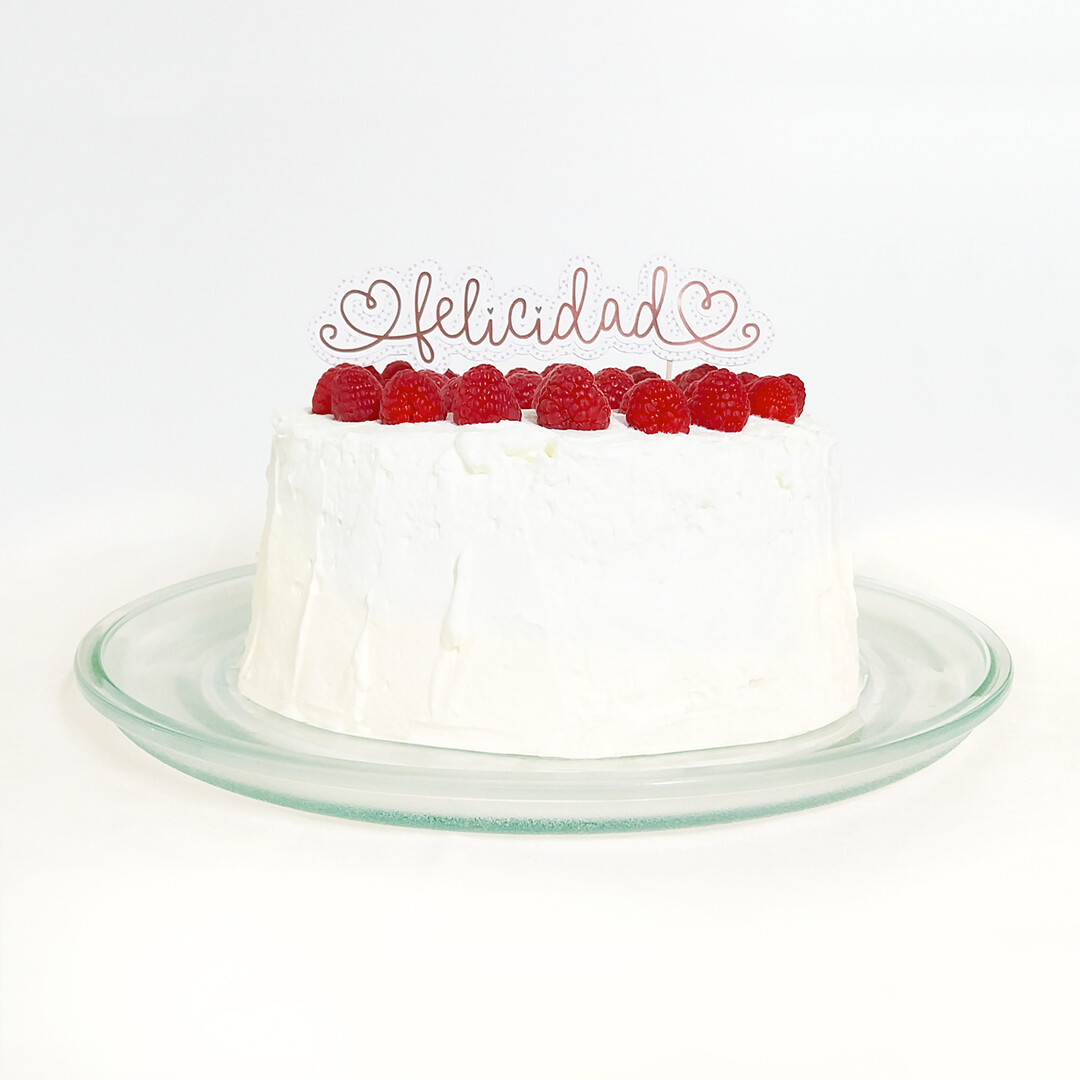 Time was short, but I didn’t want to skip making at least a small topper and taking a few photos to share. Since it was for two people of different ages, I decided to center it on one word. In Spanish, congratulations is “felicidades”, but I preferred to shorten it to “felicidad” (happiness). It felt more meaningful: not just a wish for the day, but life itself.