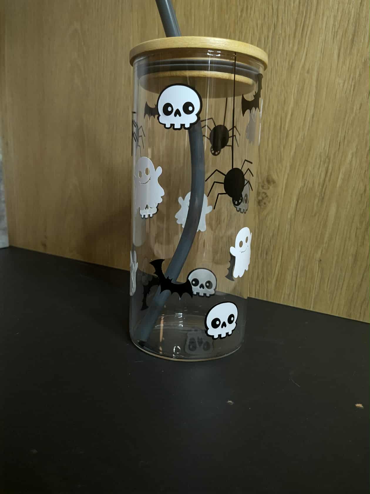 Get into the Halloween spirit with this fang-tastic tumbler that’s equal parts eerie and adorable! Wrapped in a playful parade of ghostly giggles, mischievous skulls, creepy-crawly spiders, and fluttering bats, this tumbler is your go-to companion for haunted hydration.