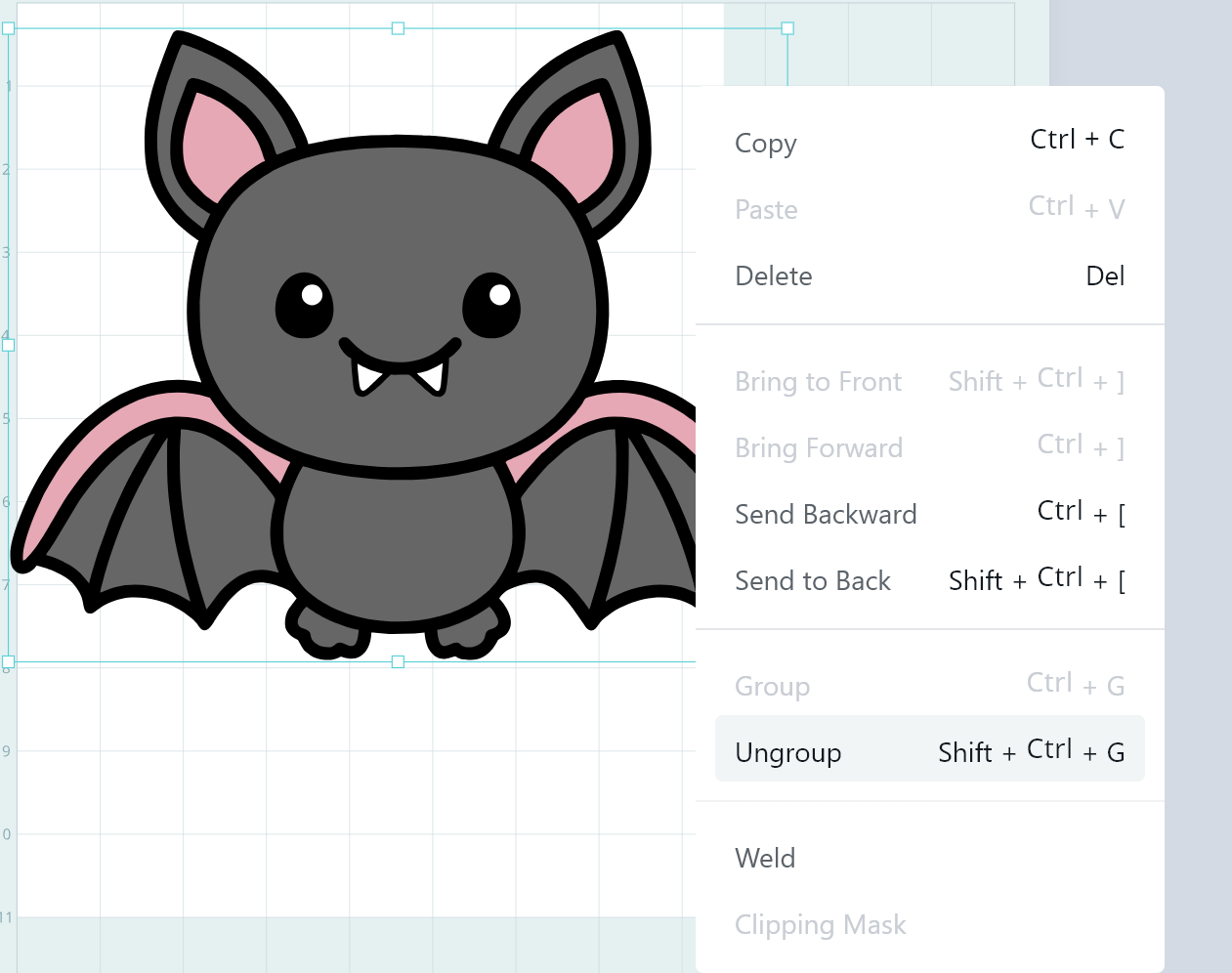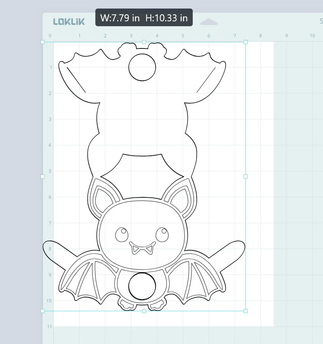 - I then changed the view to contour to allow me to see the lines of the bat SVG and adjust the position so the bat ears overlap slightly.