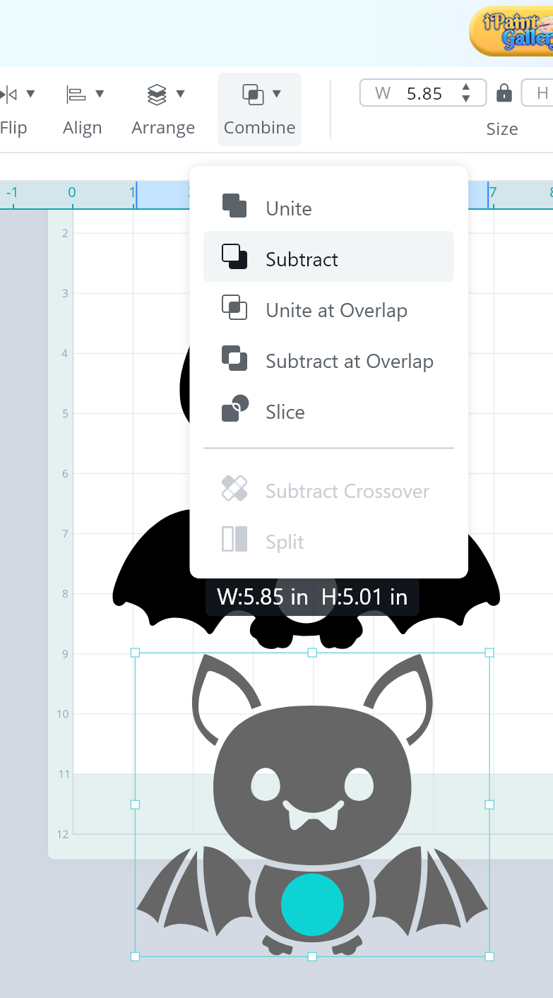 - Select the bat layer and the 2 extensions and using the combine feature click on “unite,” this will make the bat layer with the extension as 1 piece.