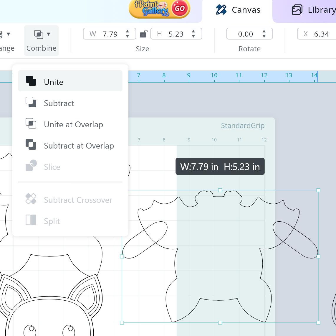 - After then you will be using the Combine feature and “subtract” for each of the SVG images.