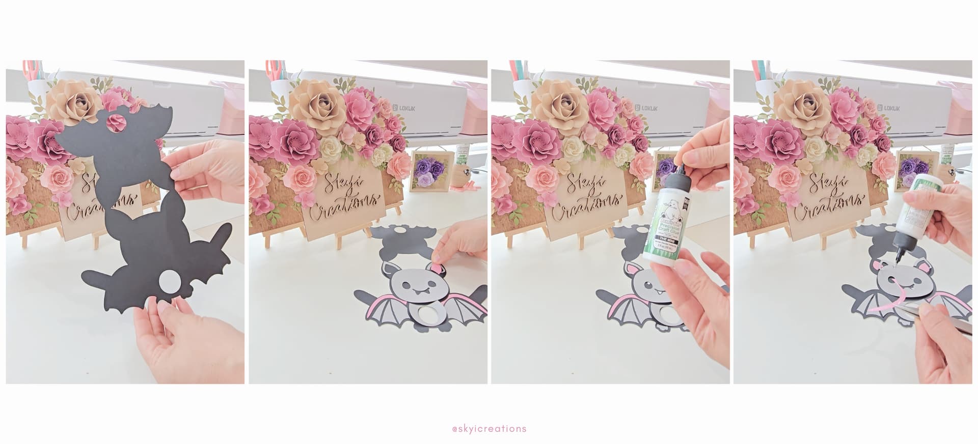 - Once the pieces are in the correct location, use craft glue to glue all the pieces on the bat layer.