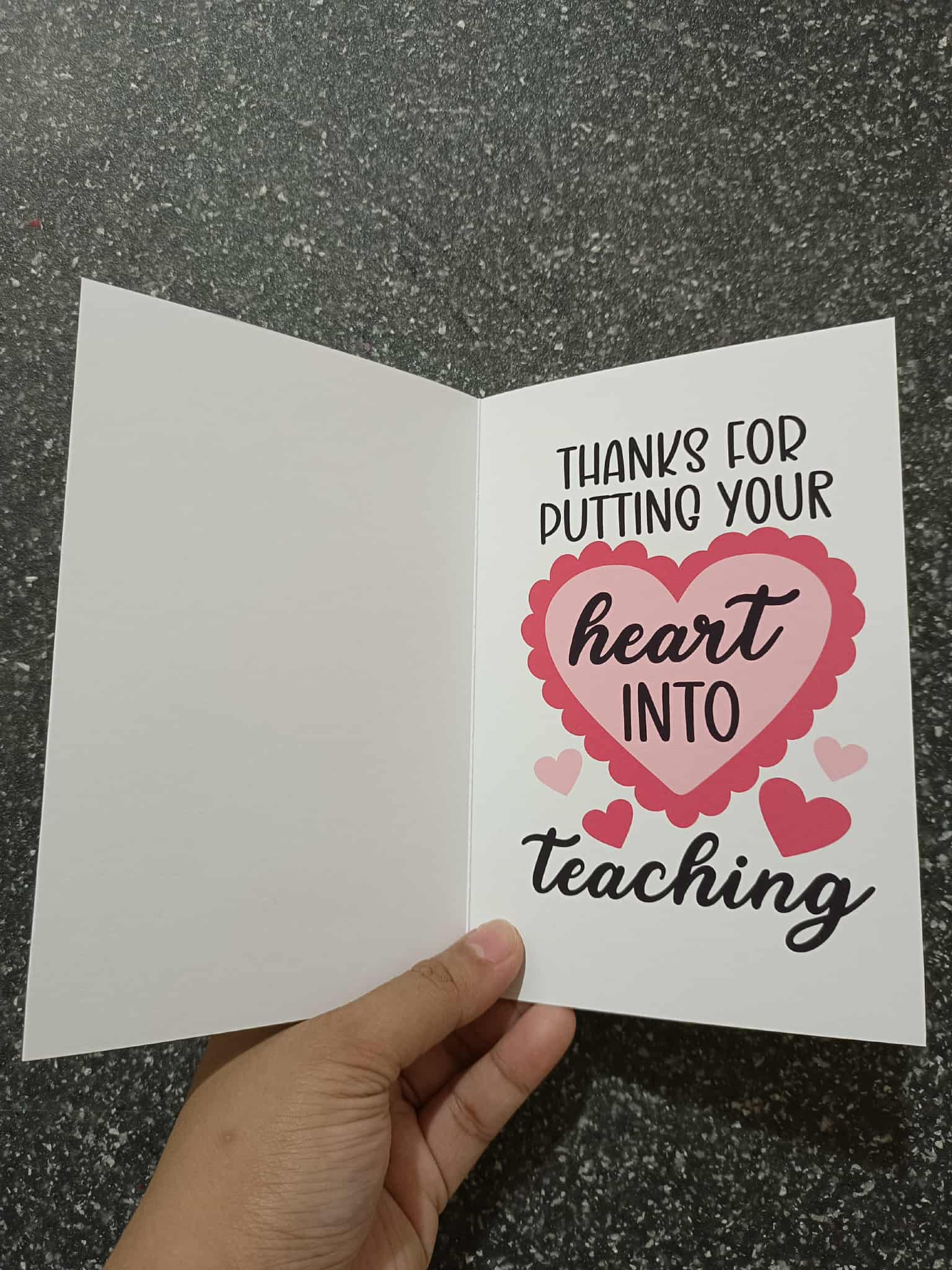 I just finished a special Teacher’s Day card that my toddler will be giving to her daycare teacher this week.