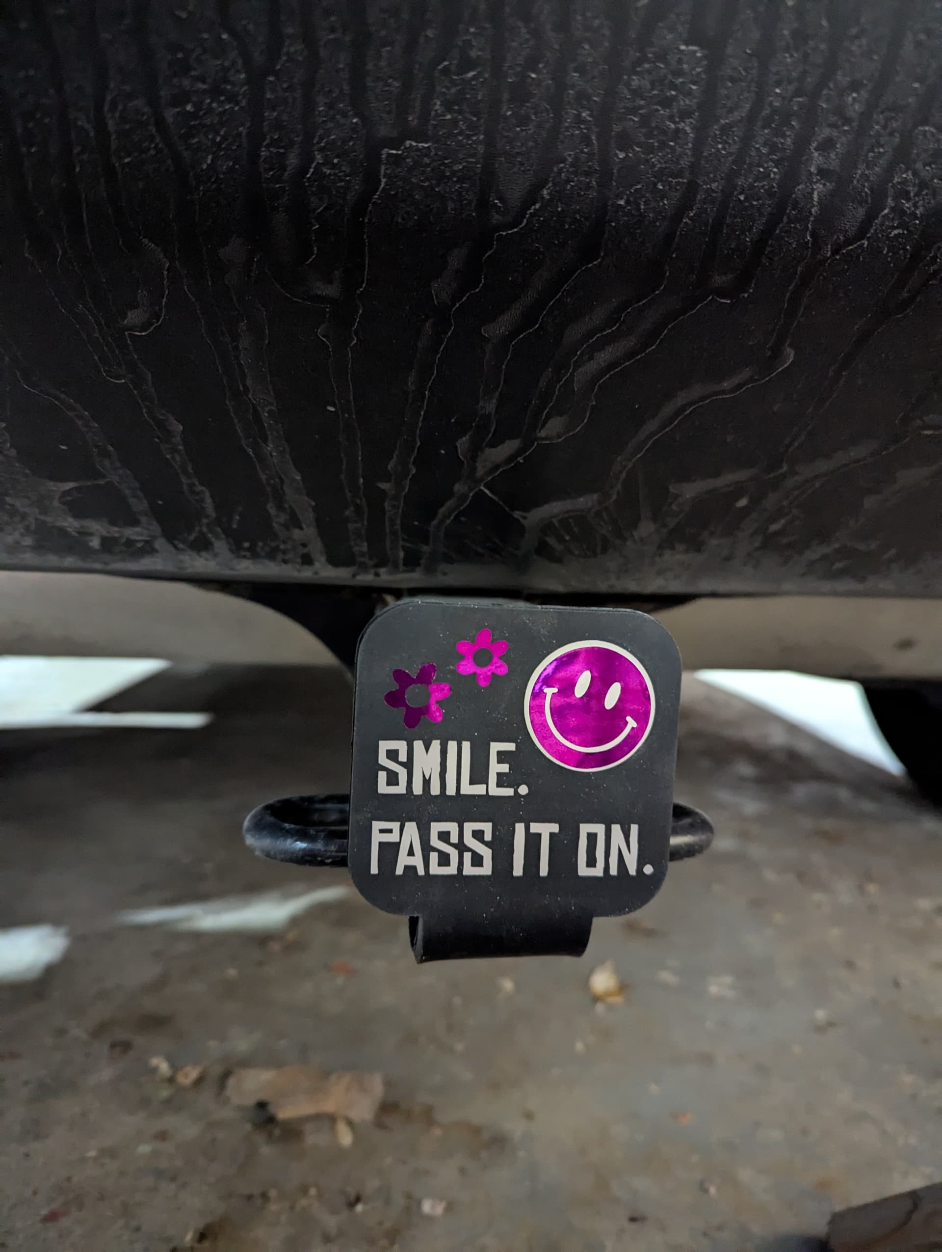 My favorite emoji is the grimace face . It was recently reported that it triggers people but for me, it’s perfect for so many conversations at work or in texts and I can say I use it at least once a day. My second favorite is the iconic 70’s yellow smiley face. I designed this shirt back in March (made one in pink for my granddaughter, too) and even added it to my trailer hitch so the people driving behind me can enjoy it, as well.