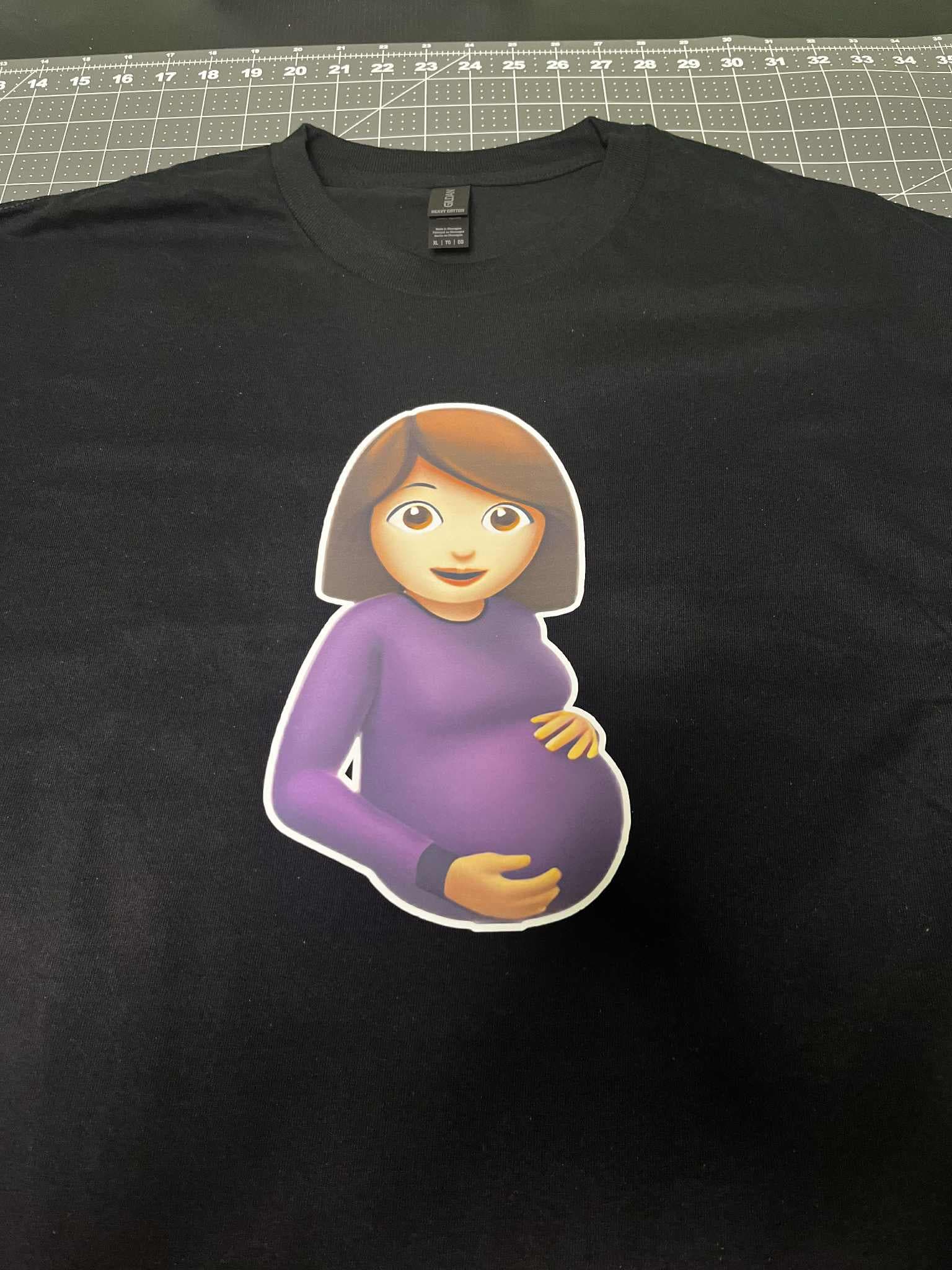 My niece is a teacher and all the teachers are dressing in black t-shirts with an emoji on it for Halloween. She messaged me on Friday and asked if I was able to make her one, she wanted a pregnant emoji because she is expecting! Of course, I was happy to help. This is the end result. I used HTVRONT printable htv.