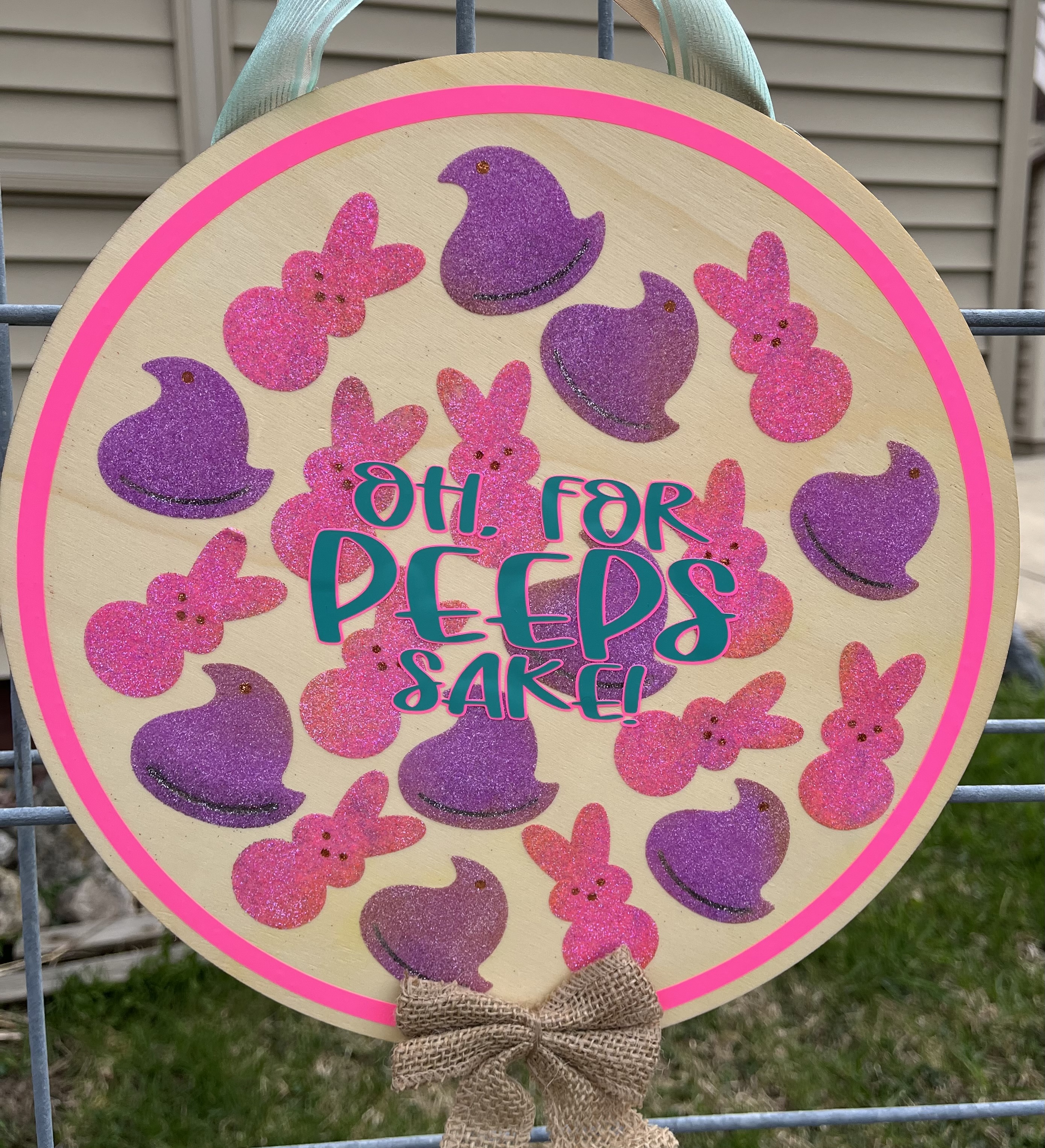 Peeps sign was made with a cat scratch and glitter it was a fun design I think theirs still glitter on the back porch from this lol.