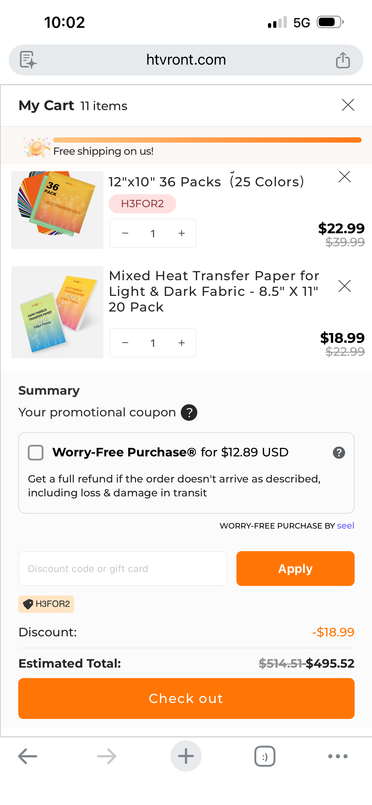 Take a screenshot of your cart showing all selected items clearly.