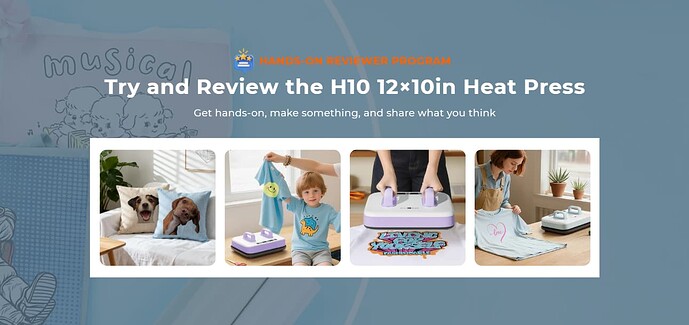 We truly appreciate the time and thought you put into your applications and your enthusiasm for the H10 12Ă—10in Heat Press.