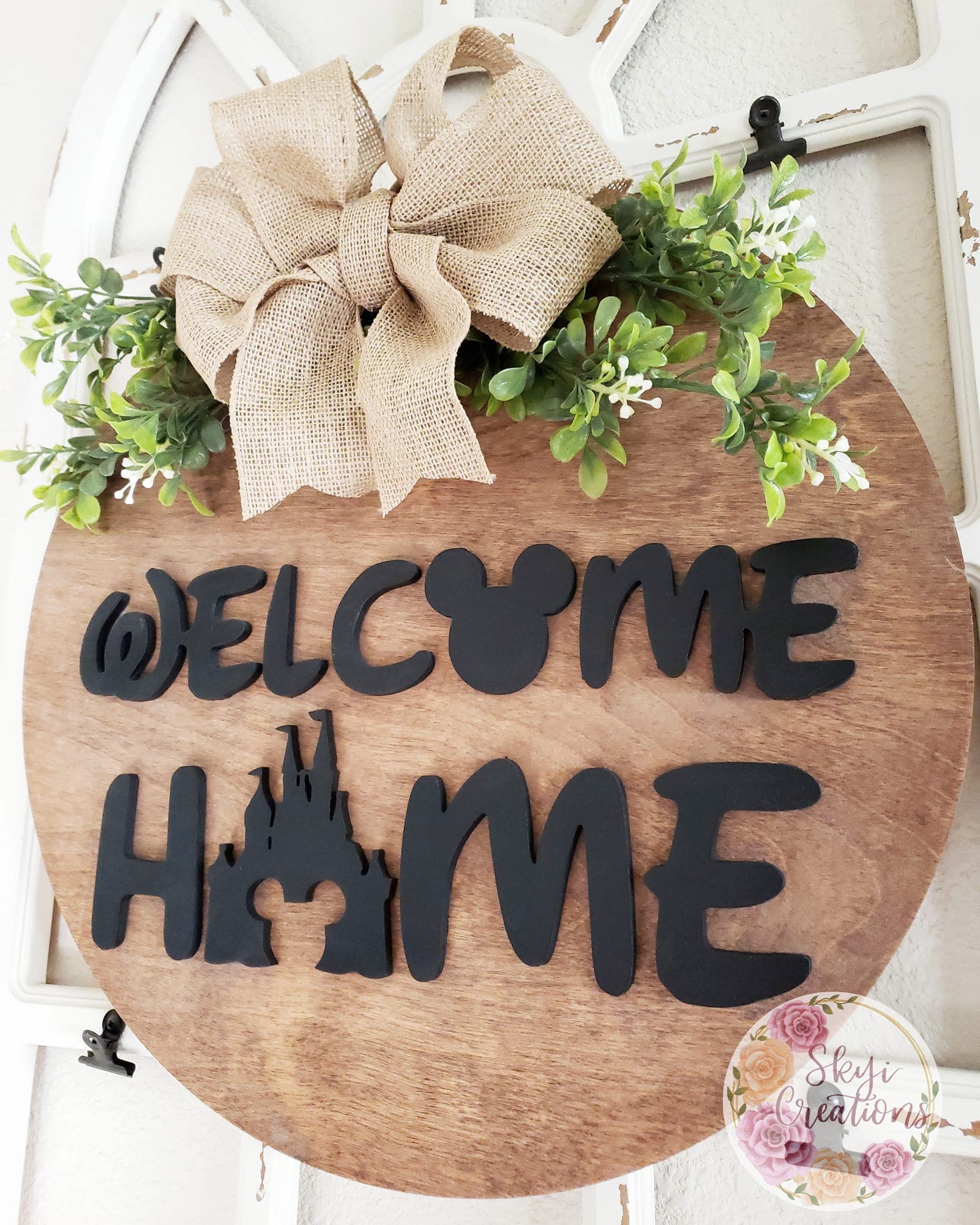 Day 1 - Home Inspiration. One of my favorite home projects was this sign I made for our front door. It is a great way to welcome our guest to our home while including my favorite character, Mickey Mouse. Love how it is a modern farmhouse style sign.