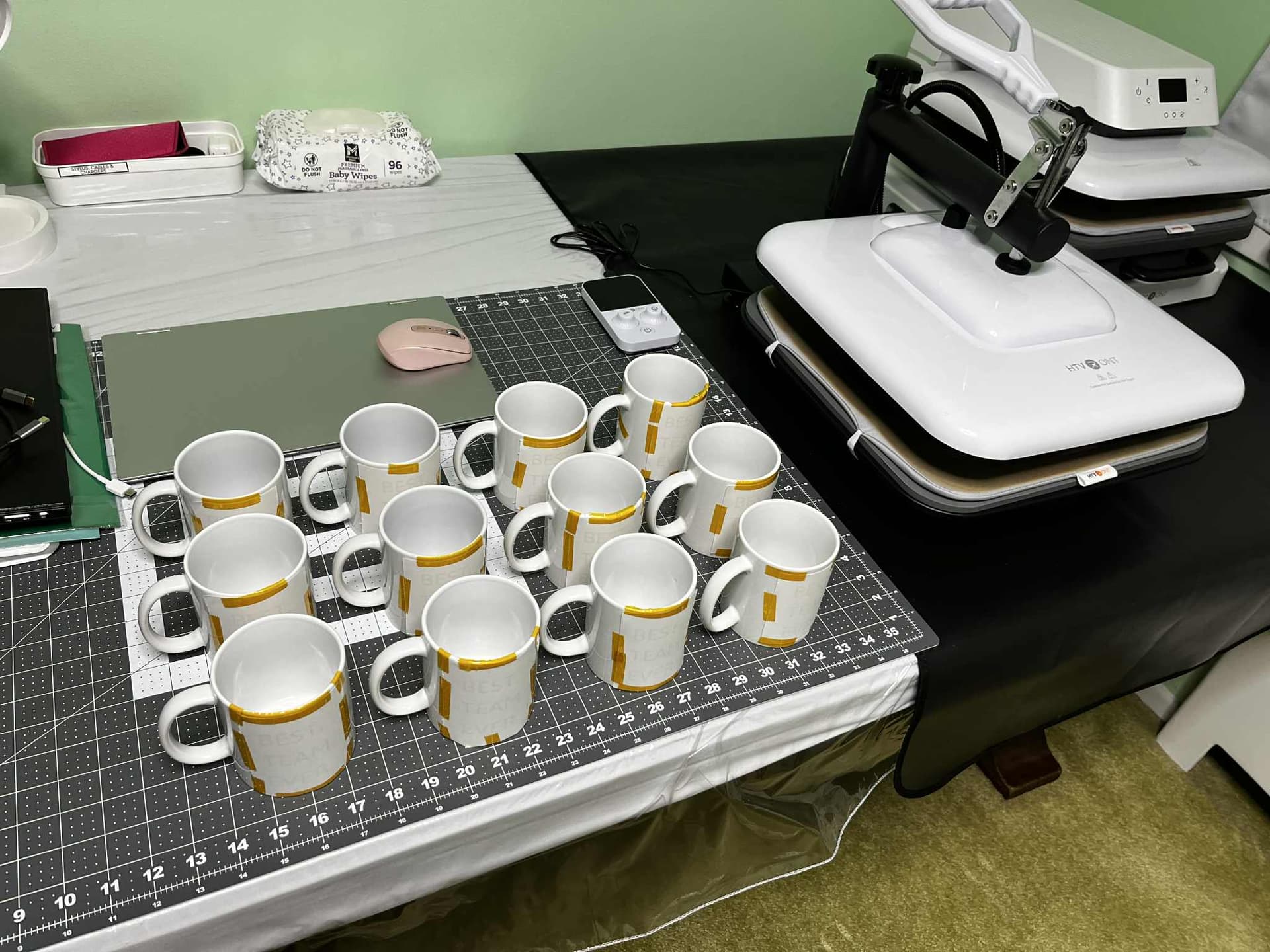 Last Christmas I made a bunch of coffee mugs for my husband to give out to his department staff. I had both of my HTVRONT auto tumbler presses working at the same time and this project was done pretty fast, with perfect presses every time. Having a creative wife saves us money-so I can buy more craft items!