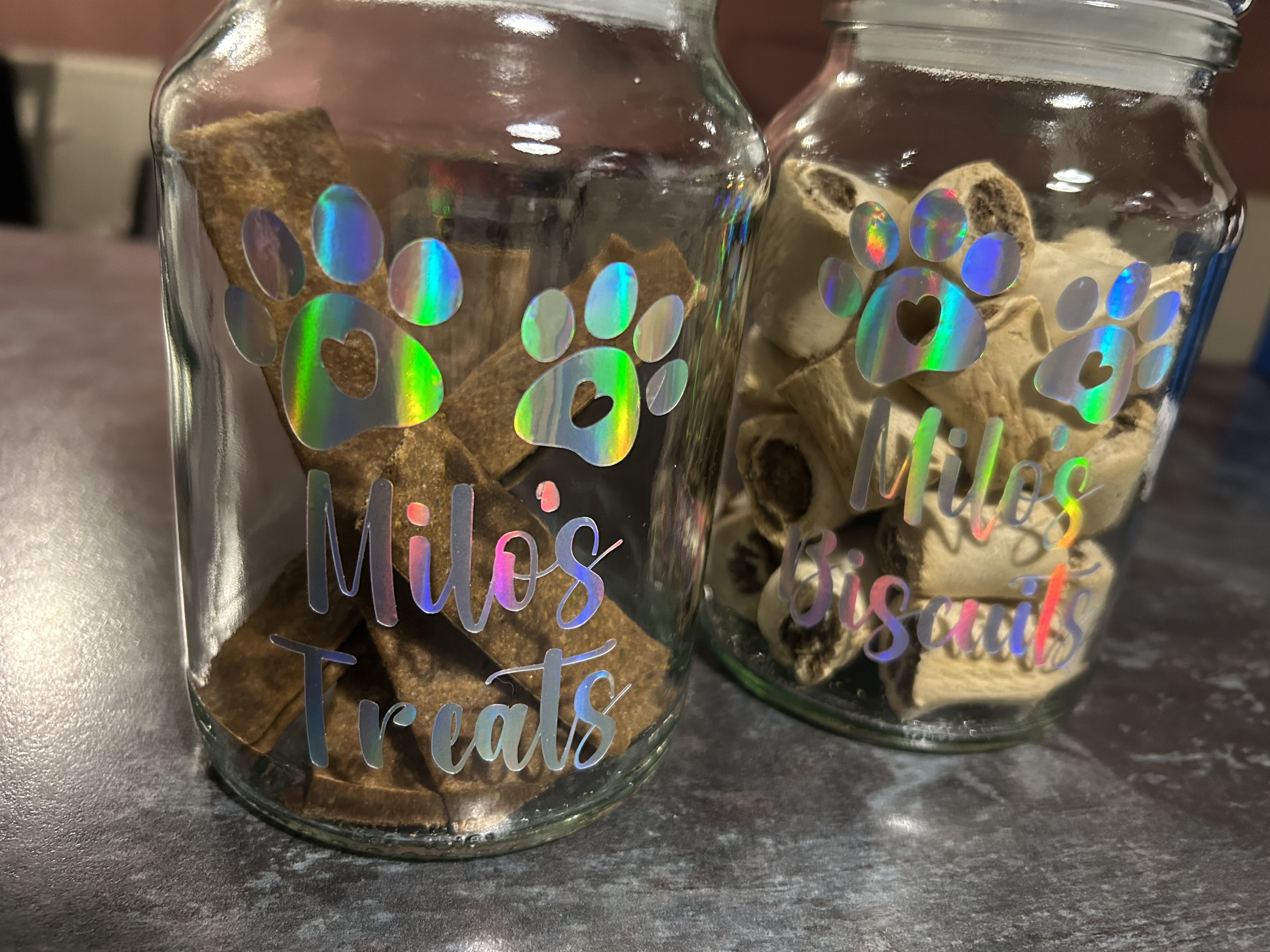 I made these for dog treats and biscuits from used Douwe Egbert’s coffee jars. The empties make excellent food-safe blanks and they cost nothing.