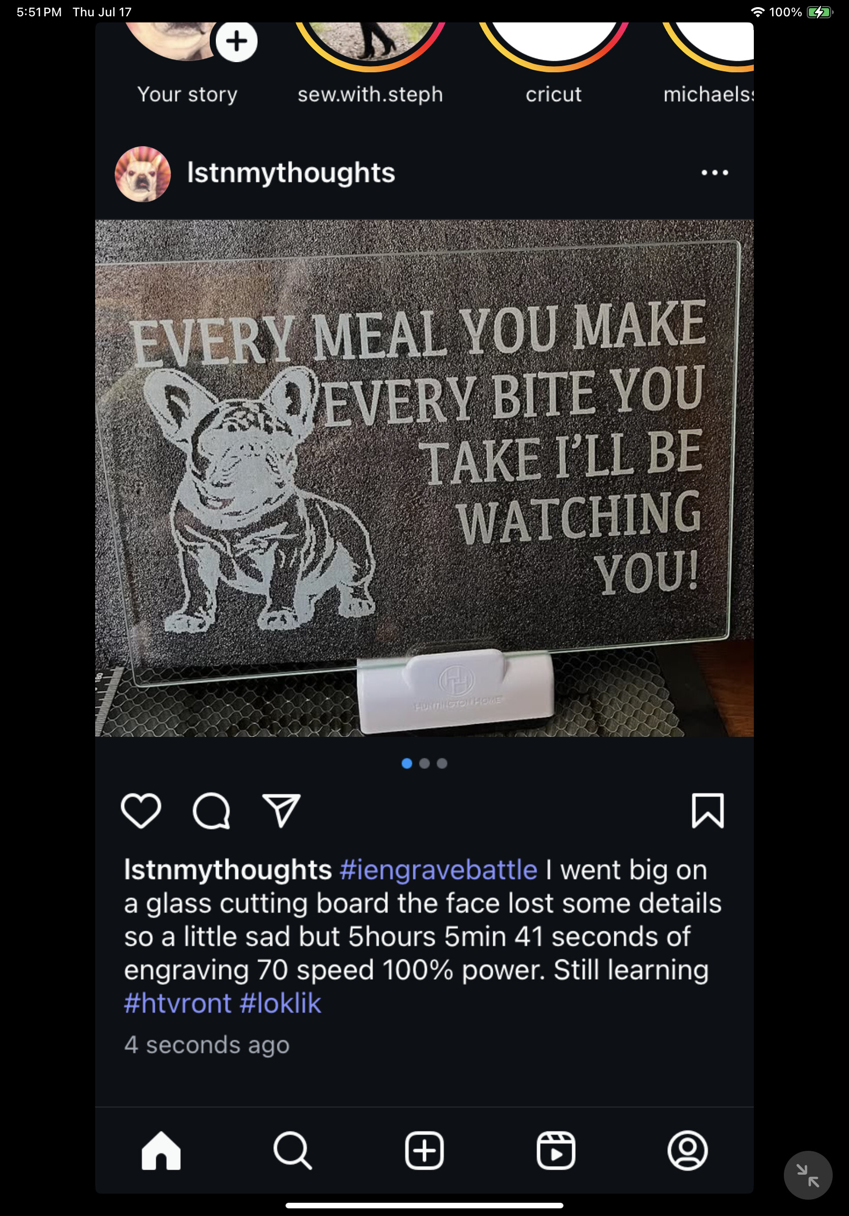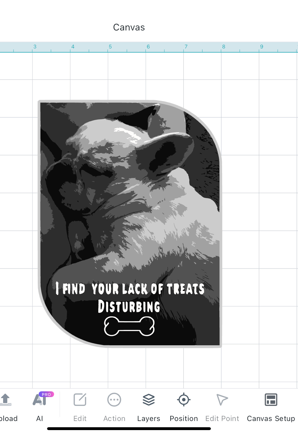 Ok so I went all in on a design chose an image that was a stamp in procreate and added text for a glass cutting board…… the face details got a bit lost but is still cute. Here are the post I did for it on ig and fb.