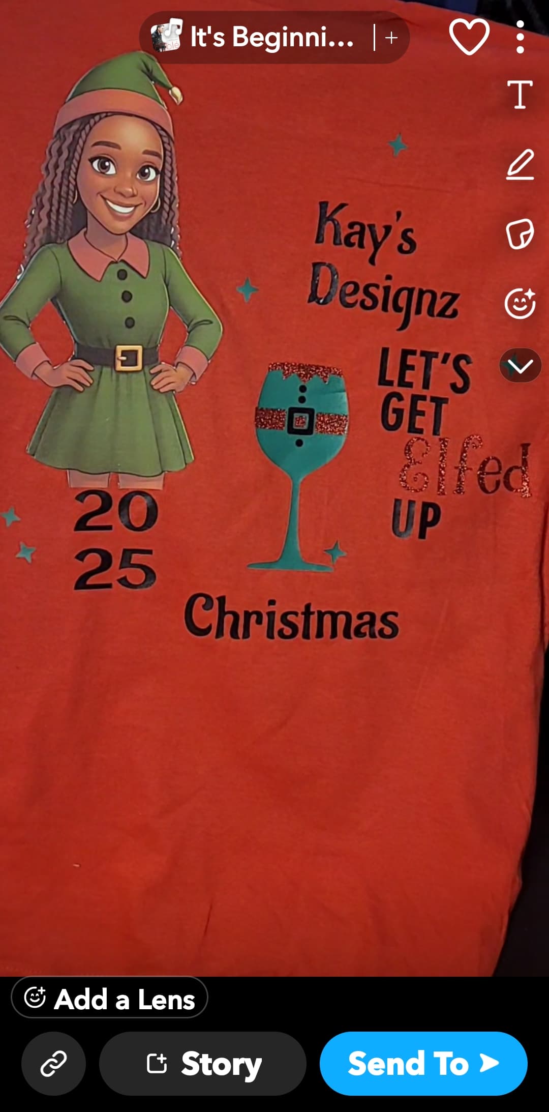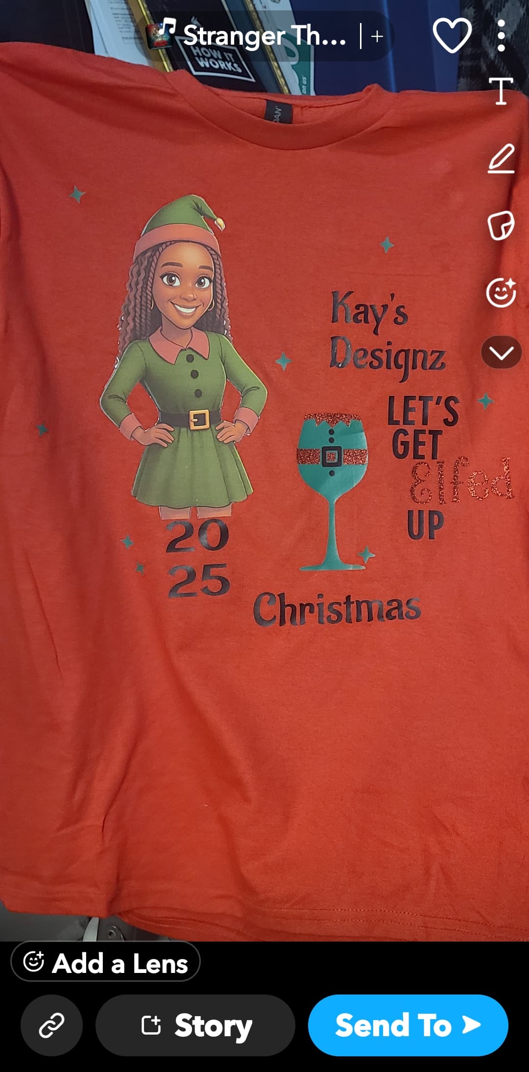 Glass Cup: “Let’s Get Elfed Up” design pulled straight from ideal studio files to match the shirt