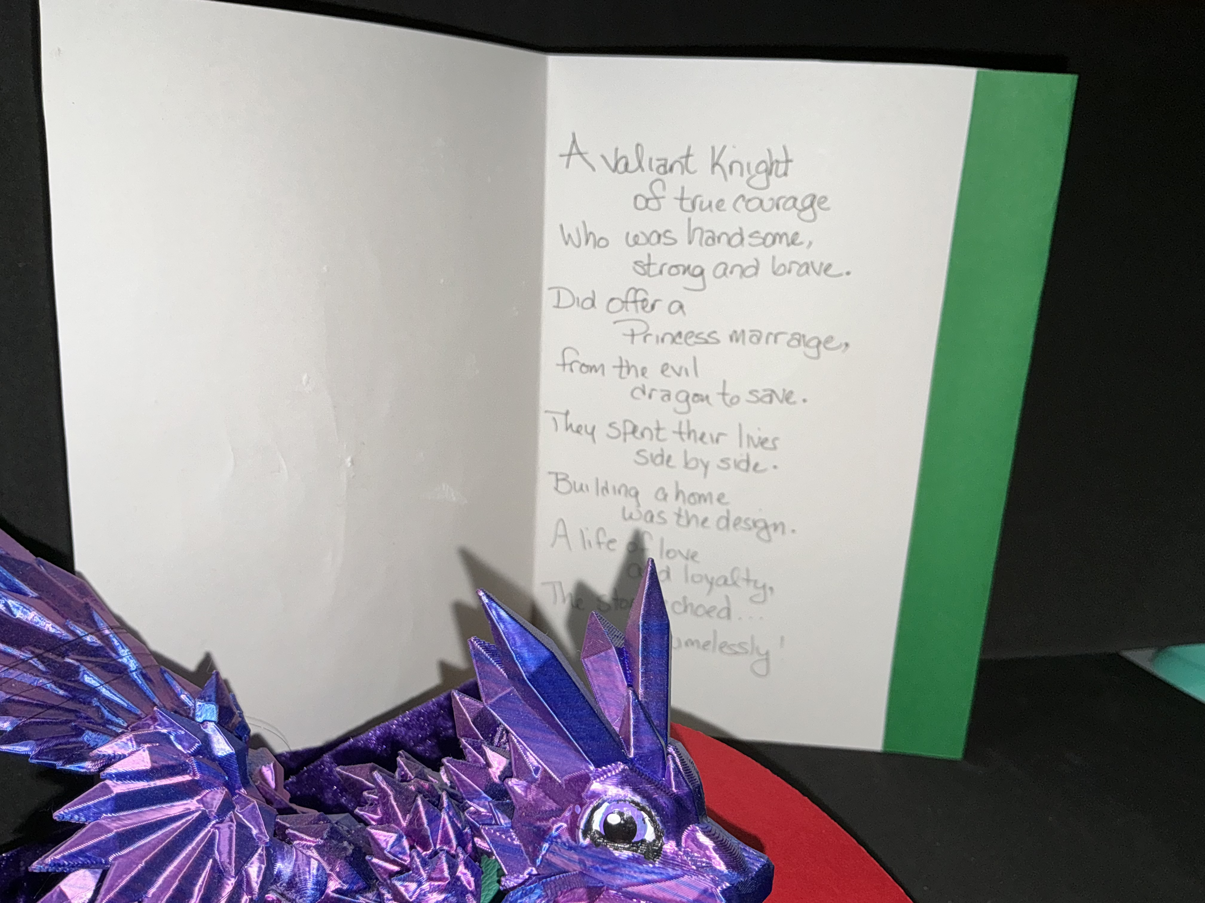 story: I made this card for my hubby. I spent quite a few hours working on the original poetry. It’s not a strong suit of mine, either is photography which I’m sure you’ve noticed. My parents always called me a spoiled princess and my home life was not very good at all. There was so much abuse and then this knight of a man rushes in and takes me out of hell and gives me the best life I could imagine. He is my knight in shining armor. Has our life been perfect? No one’s is. Mine has been the life I could only dream of. It will be timeless.