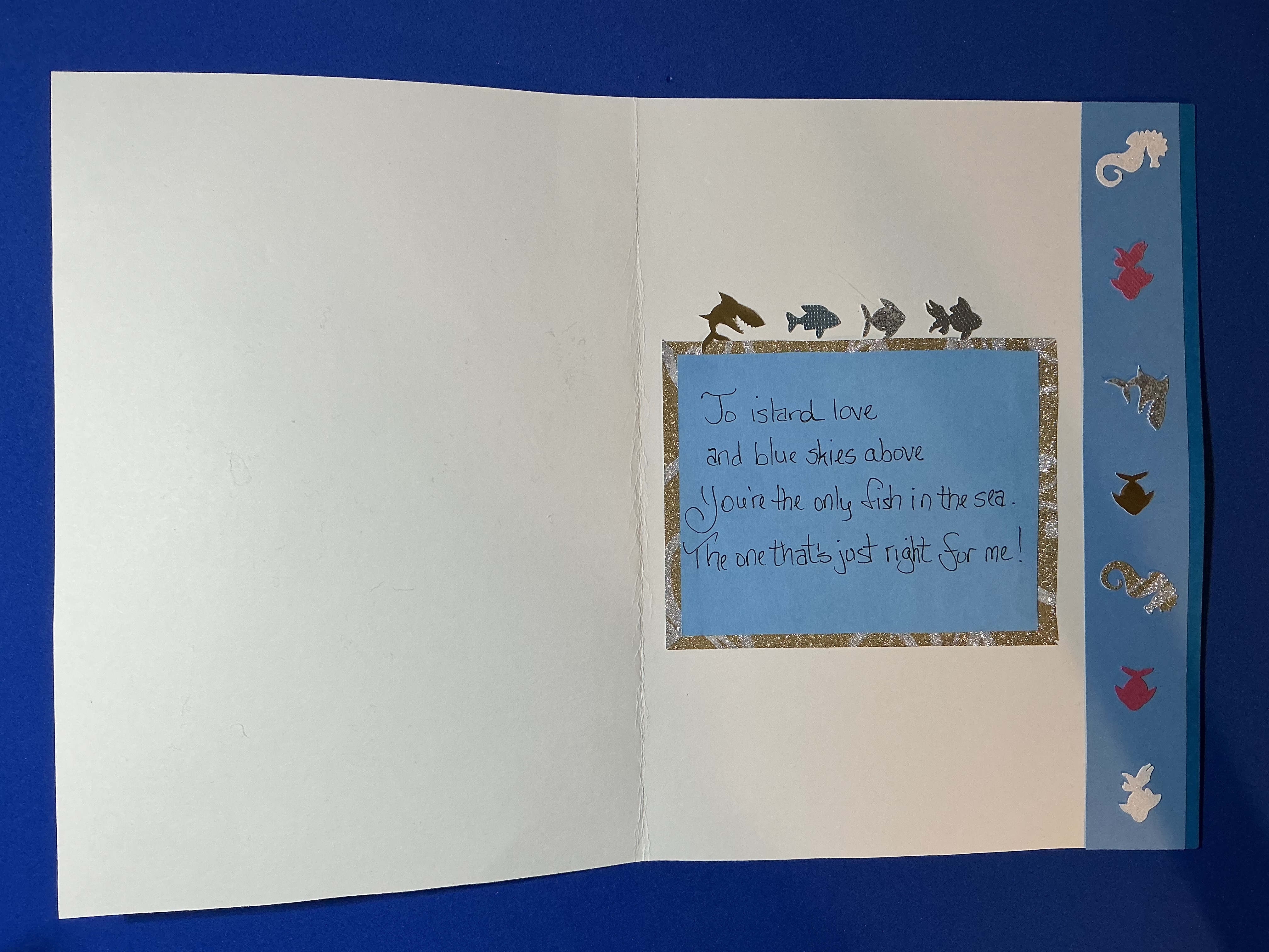 All the artwork is LOKLiK from the library. The poem ⦠short and sweet is mine. The main design was printed on the icraft cutting machine and I did a little zentangle on it. Fish, sharks and waves were cut out of card and glitterstock.
