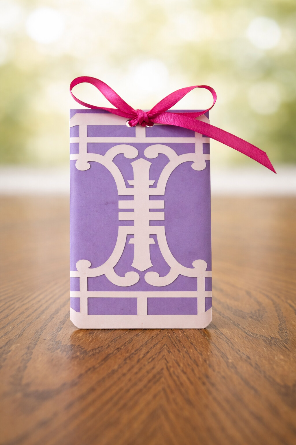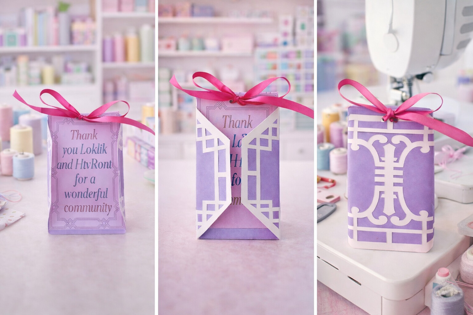 The soft lavender tones represent creativity and calm. The geometric fold design reflects precision and growth. And the bright pink ribbon? That’s the heart of it all — bold, joyful, and full of gratitude.