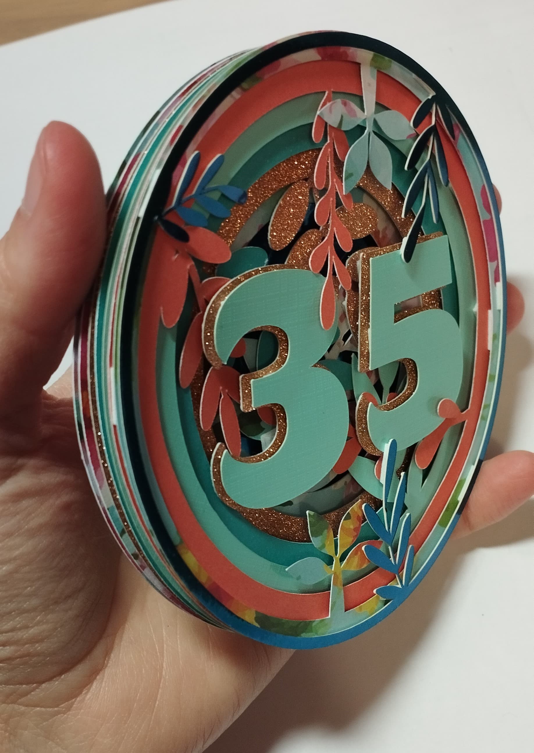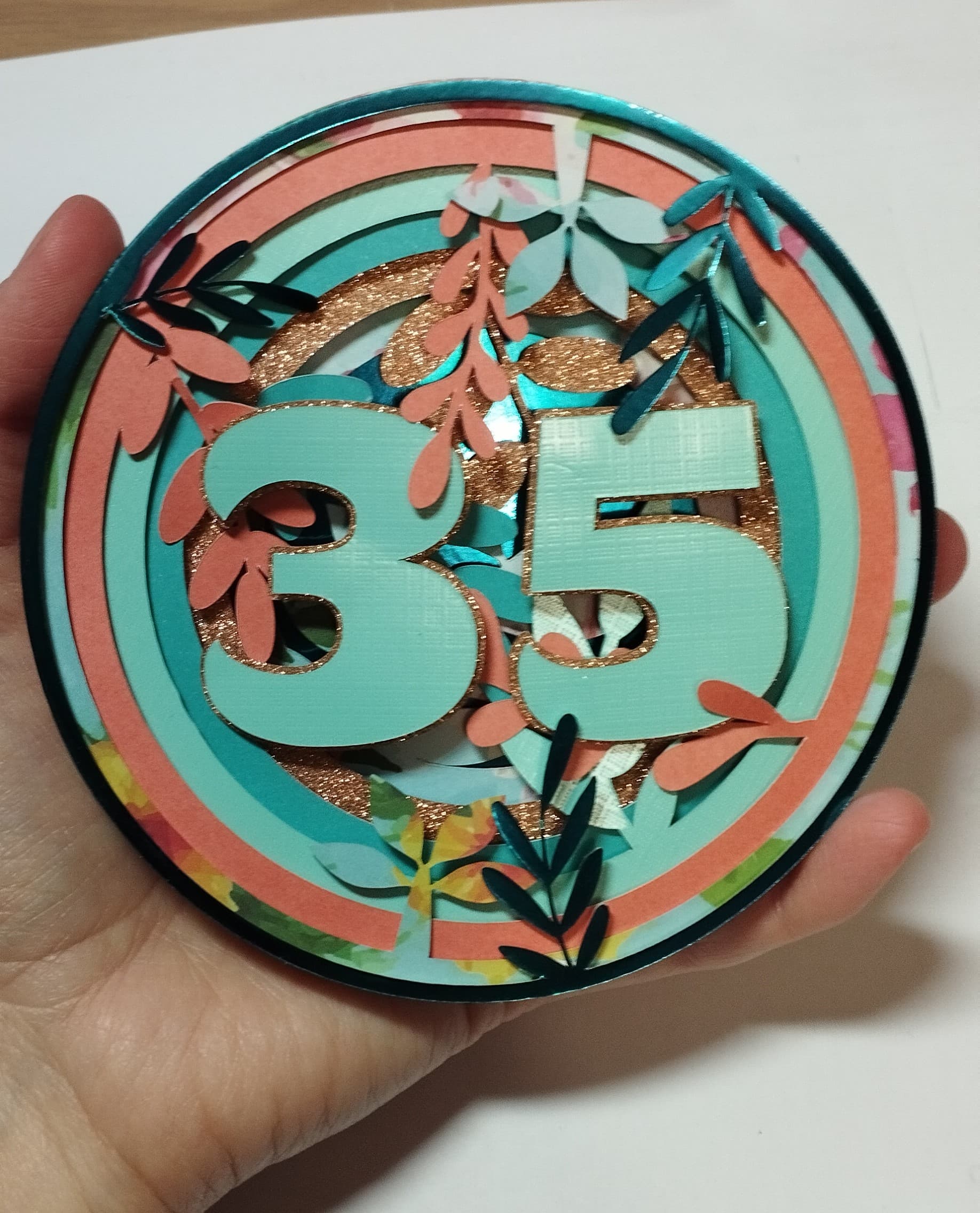 IdeaStudio link:See What I've Been Creating... Story: He comenzado con los preparativos para mi fiesta de cumpleaños así que he diseñado este topper para una de las tartas con colores primaverales y ramas. Como elemento principal mi próxima edad.