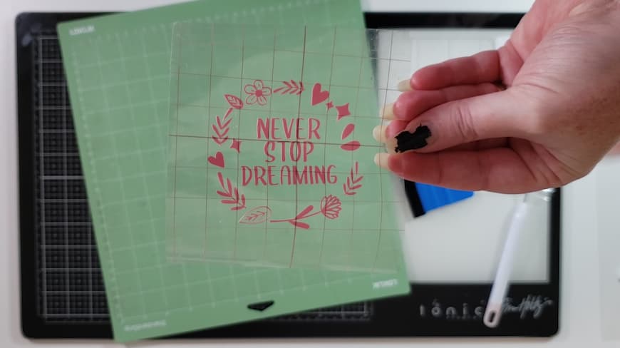 So reverse weeding can be a little hard to get your head around after you have been weeding the “right way” for so long. But it really is such a life saver when it comes to those very intricate designs or tiny letters and numbers.
