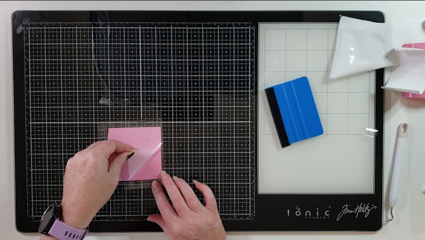 Apply the transfer tape on to the vinyl - go from the center out to apply