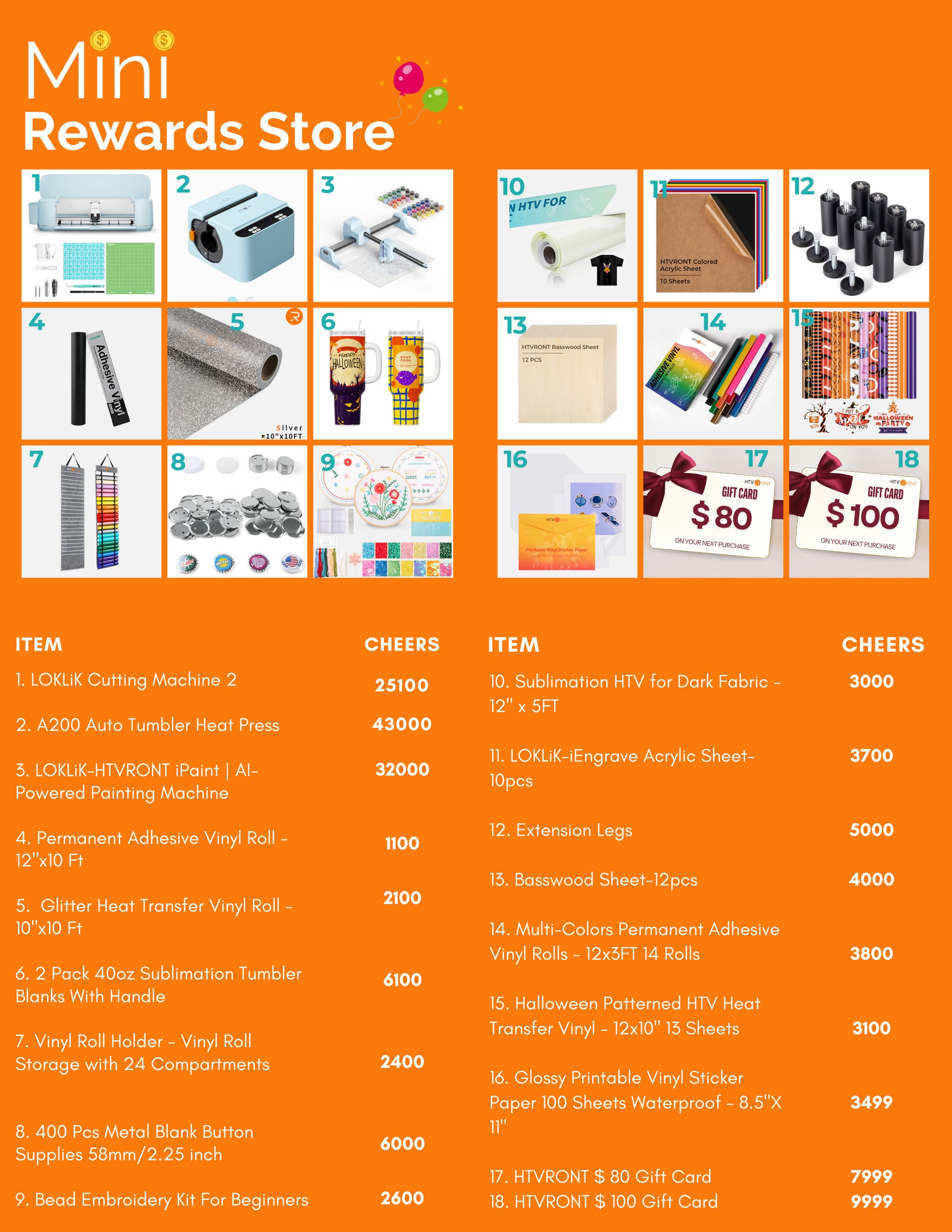 We’re beyond excited to share some great news with you today: the early launch of our Mini Rewards Store in the HTVRONT | LOKLiK Community! This is a big step forward in making our community more interactive, rewarding, and fun for every creator and enthusiast. The Rewards Store isn’t just a new feature—it’s our way of saying thank you for all the creativity and passion you bring to the table every day.