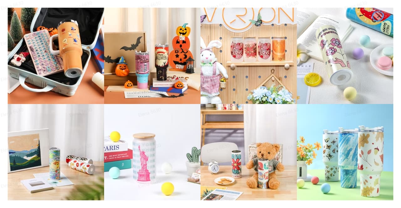 Tumbler Wraps & Kits: Pre-designed wraps for easy, complex designs.