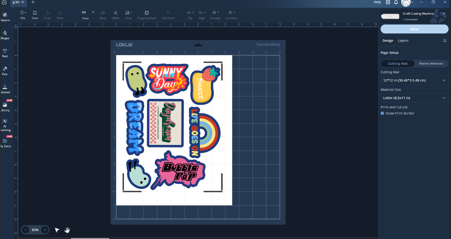 I’ve recalibrated every time before I cut each sheet yet it always come out skewed. It seems to read the print border fine but it still comes out wrong! I’ve tried all different kinds of scenarios: under direct light vs out of direct light, adjusting the rubber tires, closing the lid (this nearly broke the machine so I will not be doing that again), recalibrating for different materials with vs without laminate… I think I might have gone a bit cross-eyed looking at recalibration lines by now.
