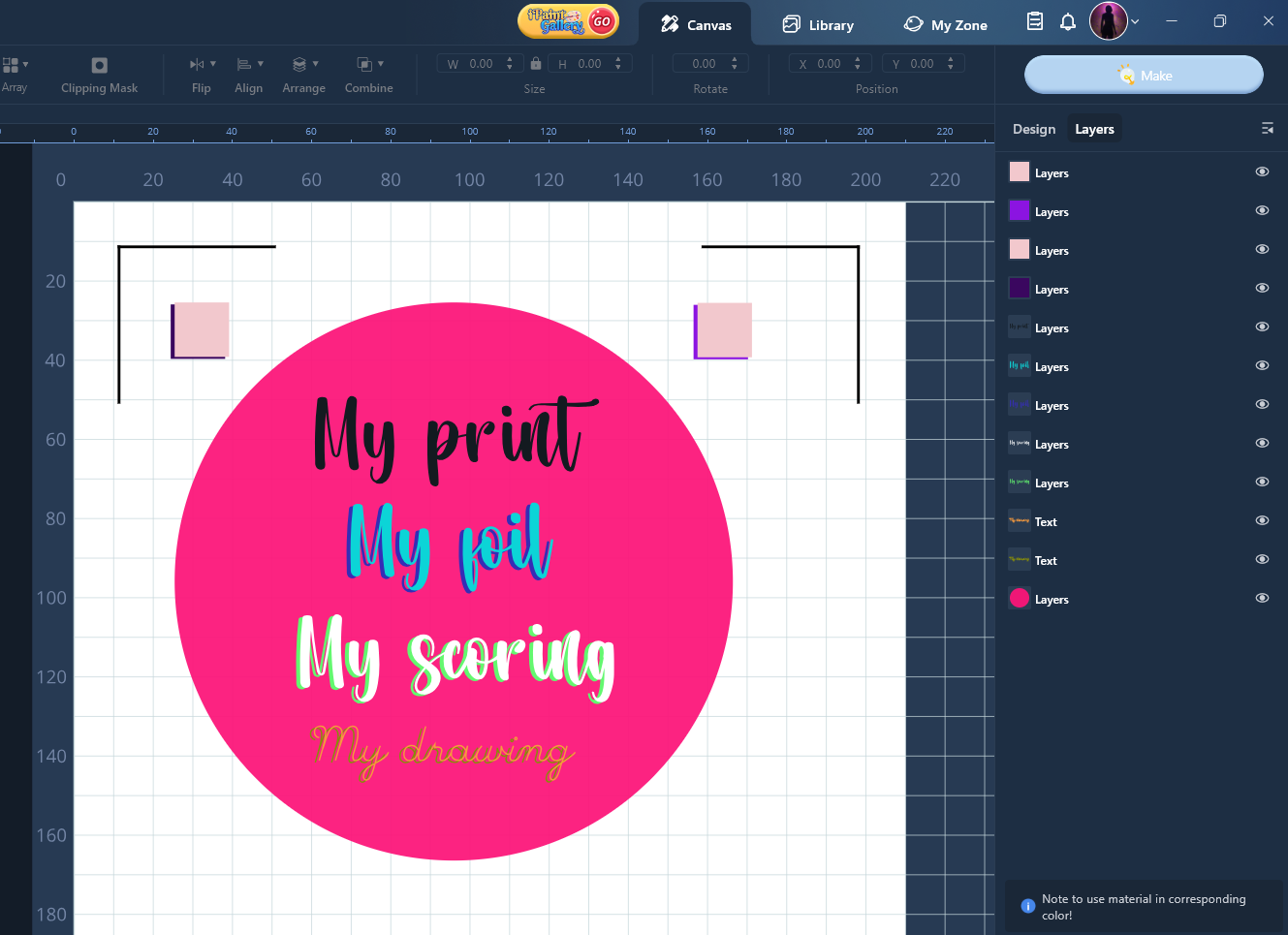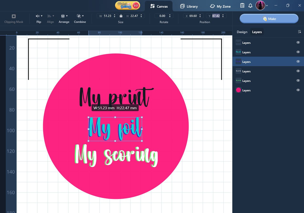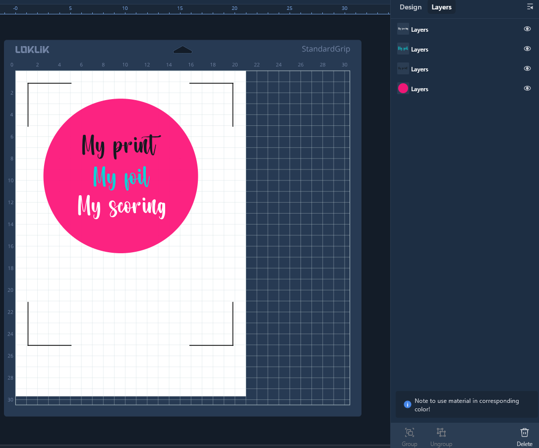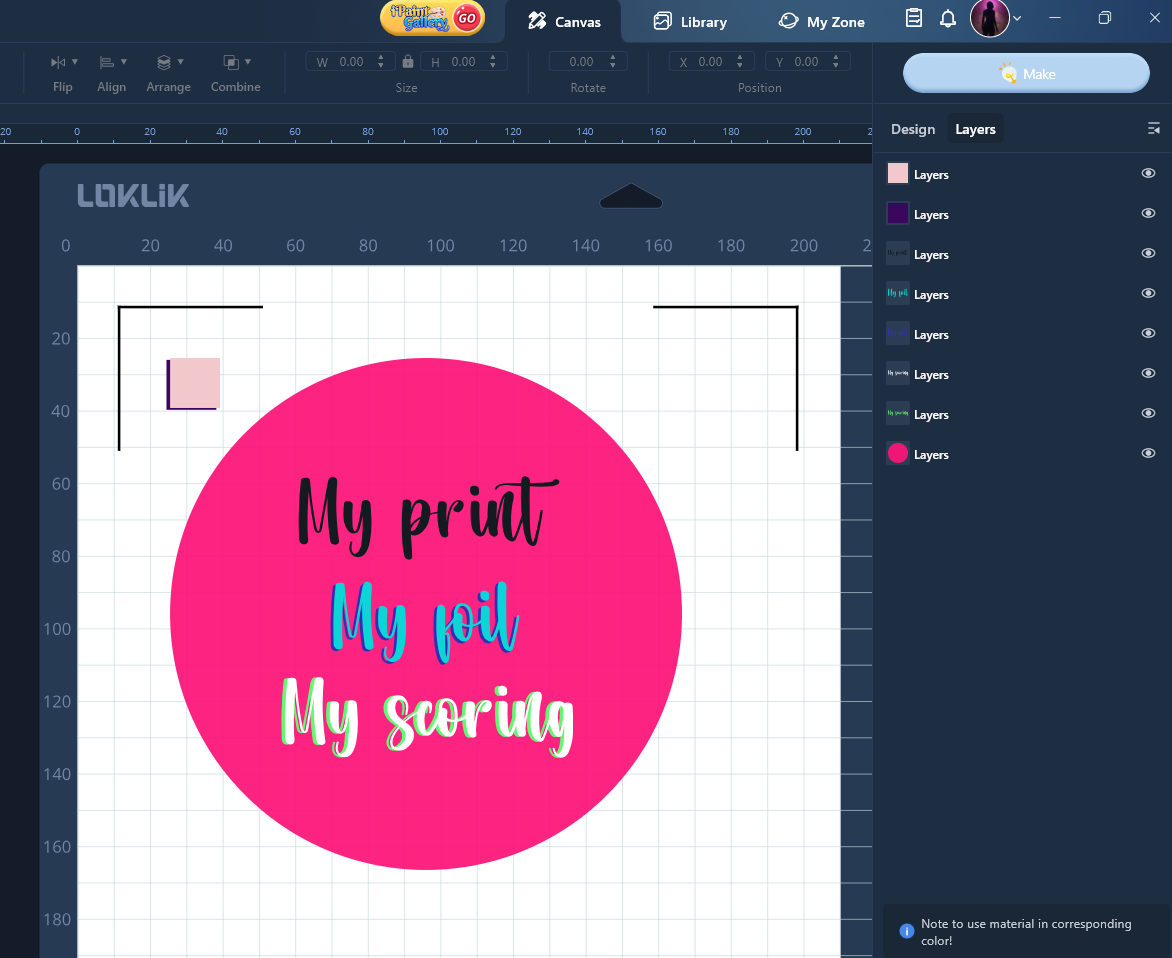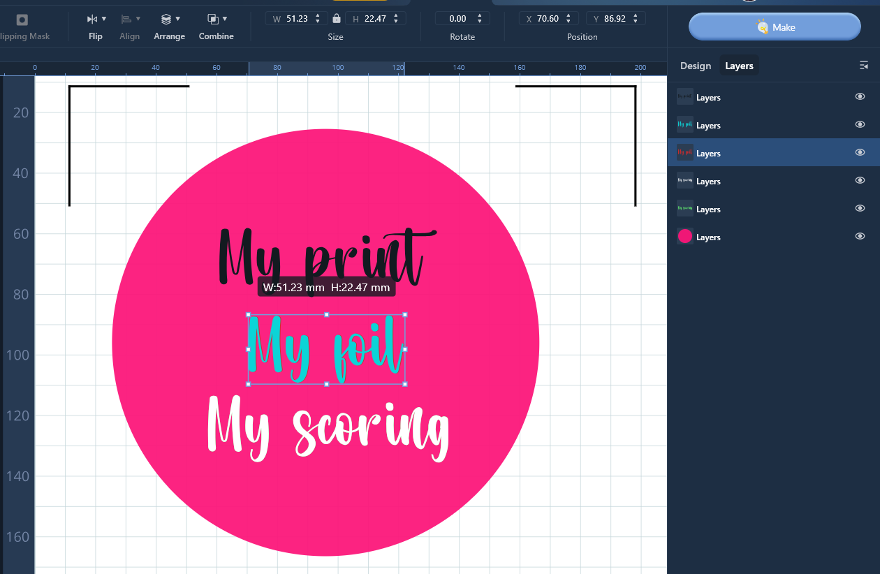 Notes checked… imagine this is the project you want to print, then score, then foil, then cut…