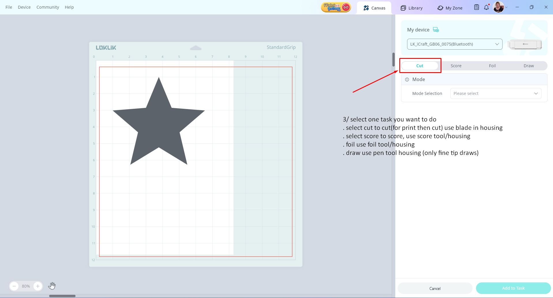 can you confirm if you are using a design from the LLIS library for the cut and score function? or one of your own designs uploaded?
