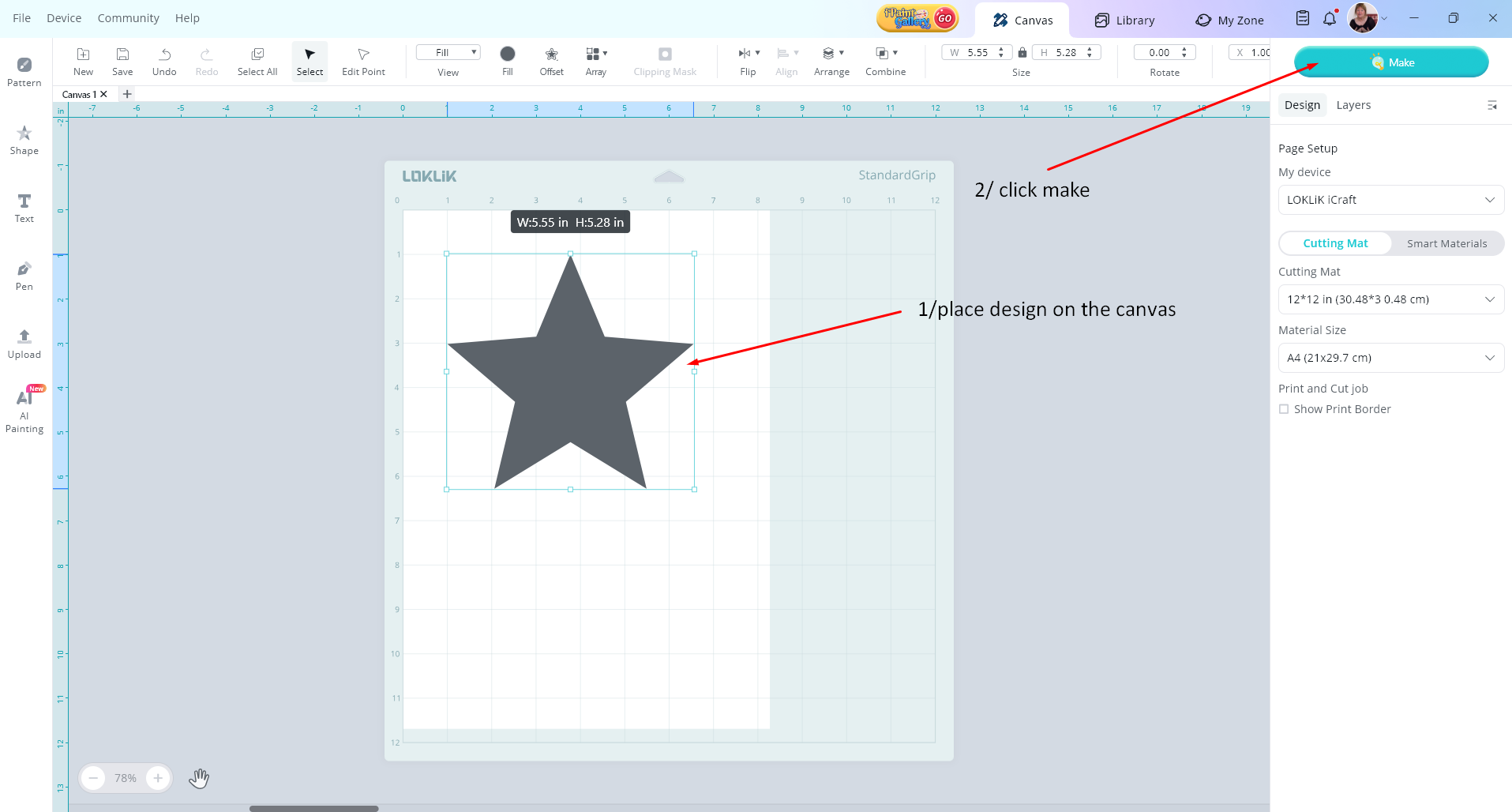 1/ start by adding your design to the canvas…