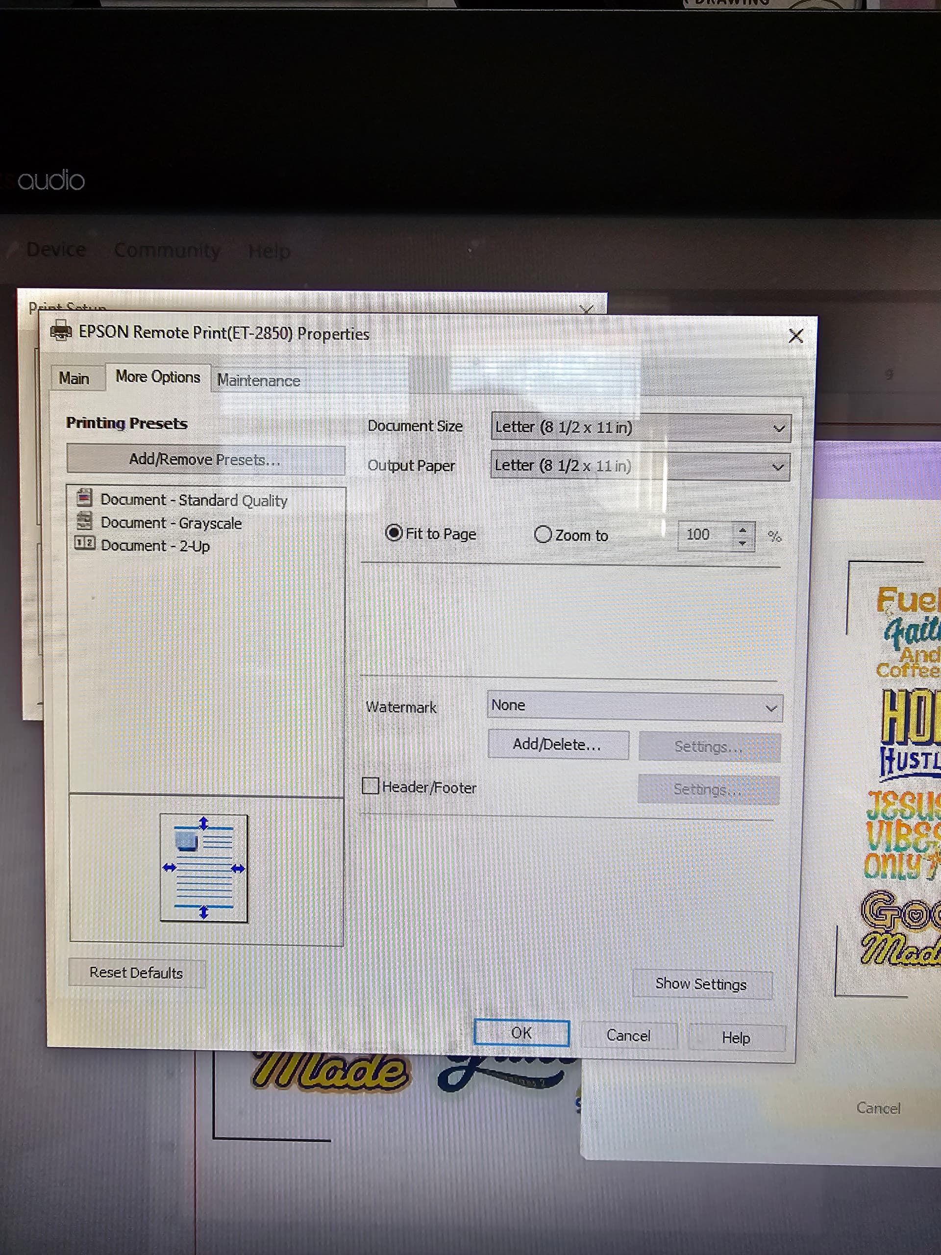 Ok, after a good night’s rest, I’m back and ready to try again. In regards to the Epson printing, I have more options when printing directly from the Epson software/mobile app. But when it comes to printing from other applications, it only gives me a small selection of paper type settings with 2 selection, plain paper and glossy photo paper. I’m trying, right now, to do a PTC on the stickers I did last night. I notice that I can expand the offset after uploading the sheet to the IS, so it doesn’t try to contour all of the letters, but rather go around the artwork. I just left the offset alone, yesterday. After expanding it a few times, it looks like it may cut better. However, I think I might have better luck if I upload each design separately and add it to the canvas that way, rather than uploading a whole sheet, as it seems to want to cut multiple designs as one, instead of individually. Maybe if I remove one of the designs and space them further apart, that may help, as well.
