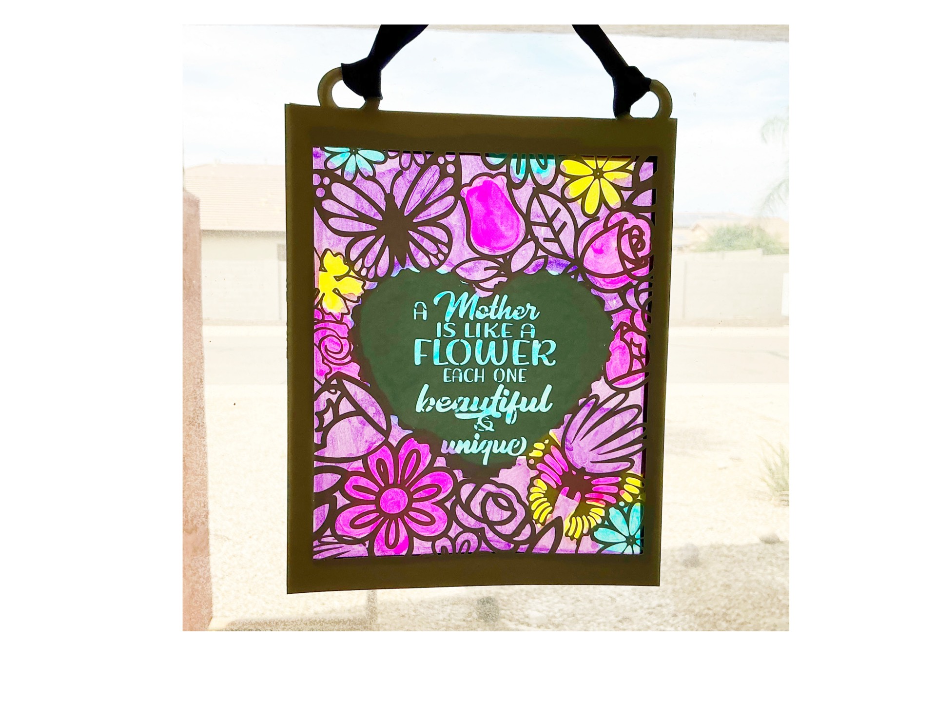 - Add ribbon and hang with suction cup