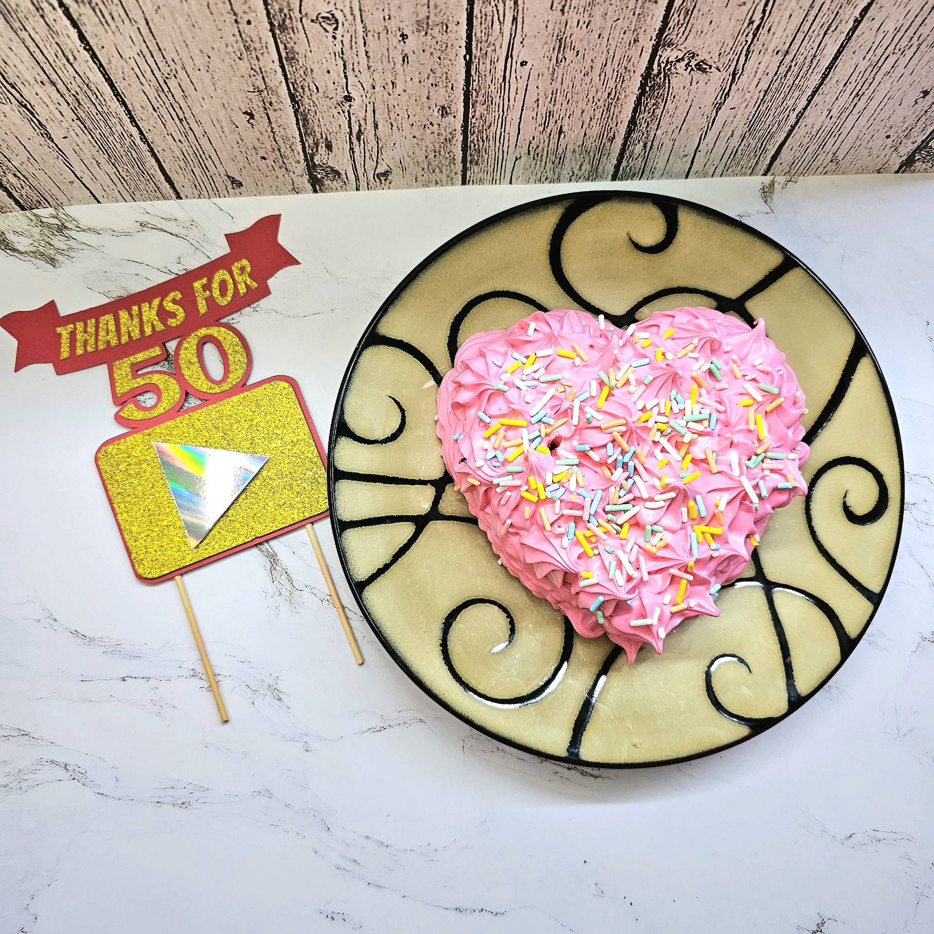 To celebrate reaching 50 subscribers on my YouTube channel, I created this simple and bold cake topper using layered cardstock and glitter accents. I wanted something bright, readable on camera, and easy to assemble, so I designed a clean layout with the phrase “THANKS FOR 50” as the main focus.