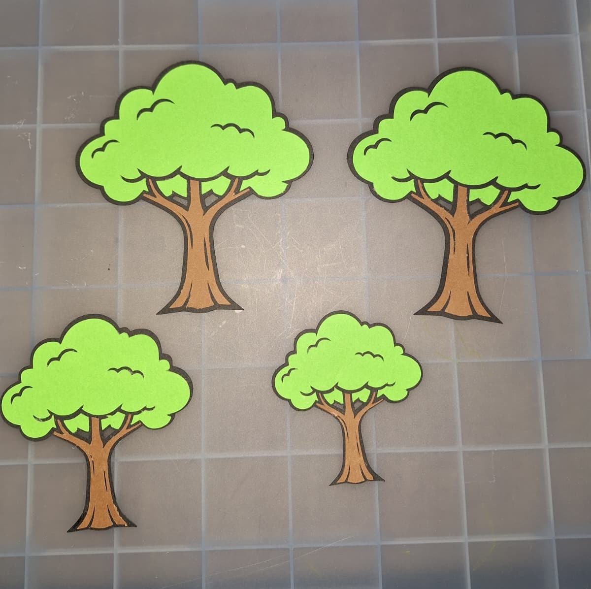 Arbol sencillo para decorar cualquier cosa en este caso lo uso para hacer una bandeja sensorial de la granja por eso diferentes tamaos es muy facil hacer solo se necesita cartulina negra verde y marron ademas de pegamento para pegarlos.