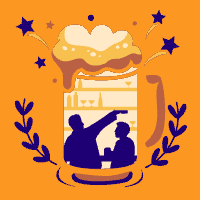 Inside the transparent window of the mug, two silhouetted figures share a quiet yet meaningful moment at a bar. Shelves of bottles and glassware line the background, suggesting stories, laughter, and memories layered just like the paper itself. One figure lifts their glass high, mid-toast, while the other leans in, fully present in the moment. Though faceless, their shapes express friendship, connection, and the simple joy of time well spent.