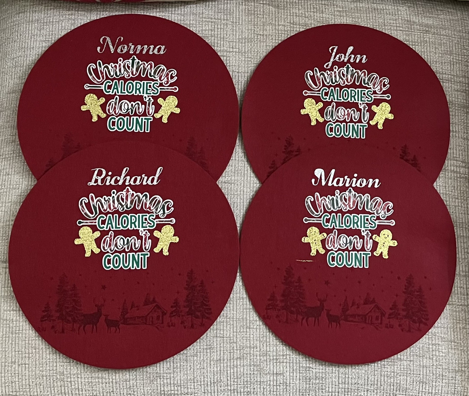 This year I thought I would make it extra special and have everyone’s name on their placemat on the Christmas Dinner table.