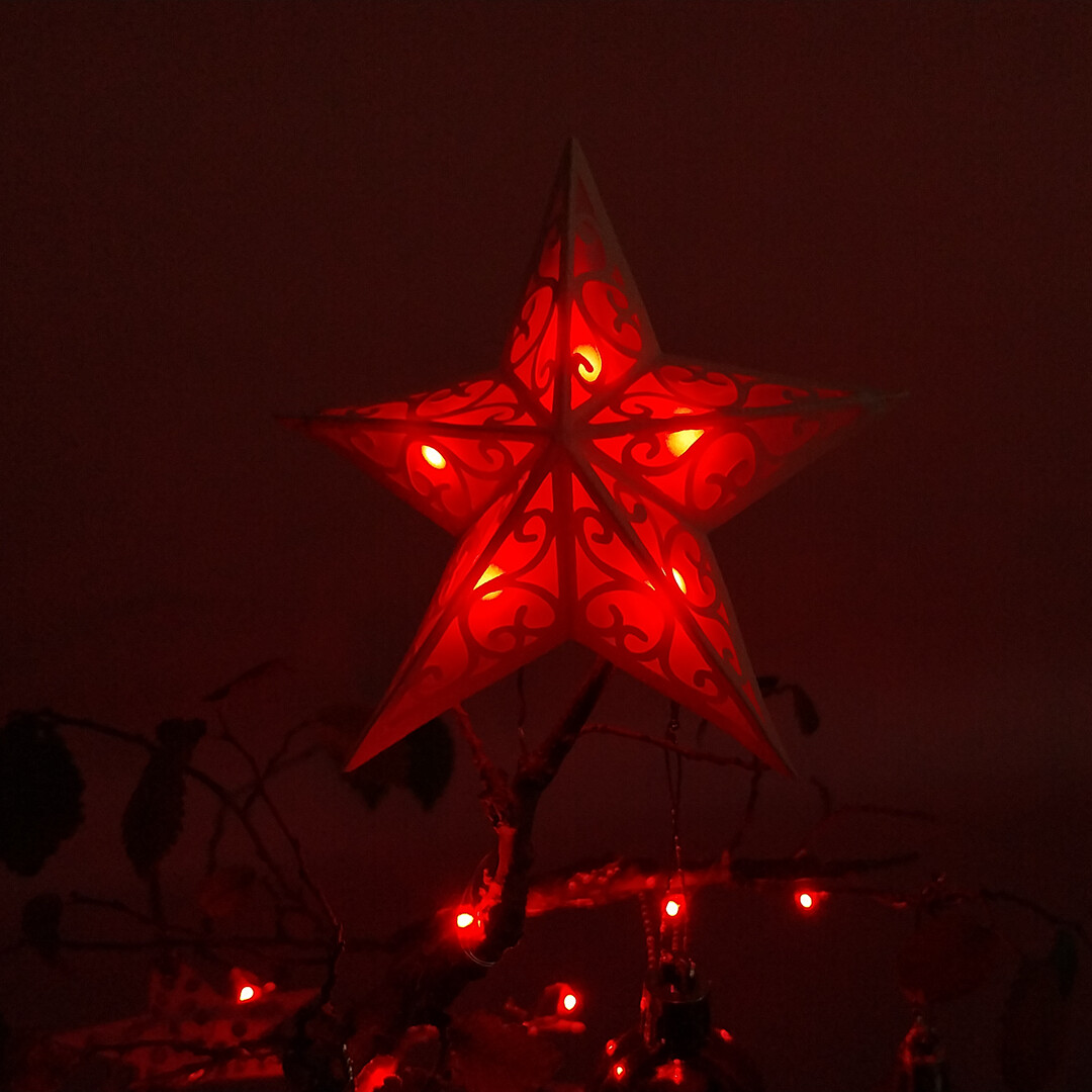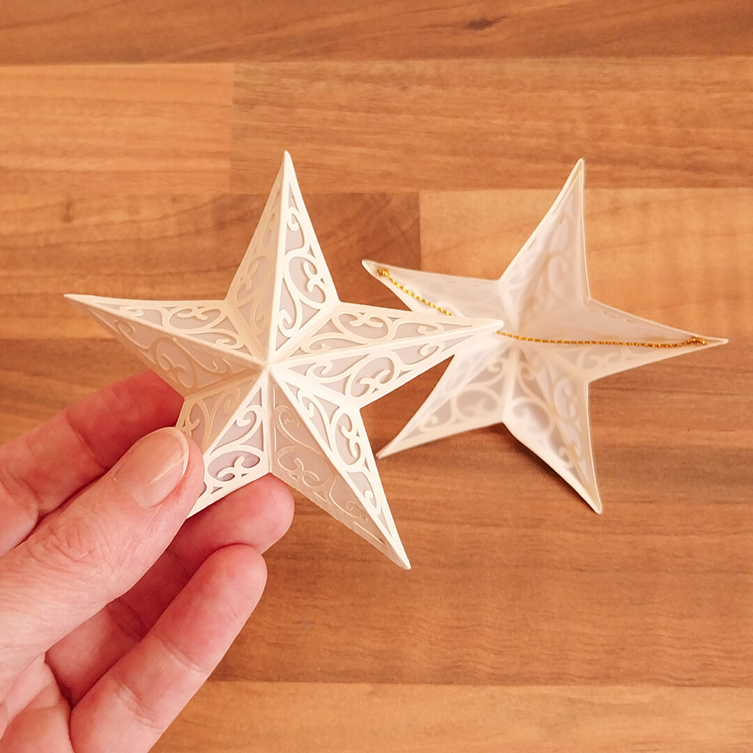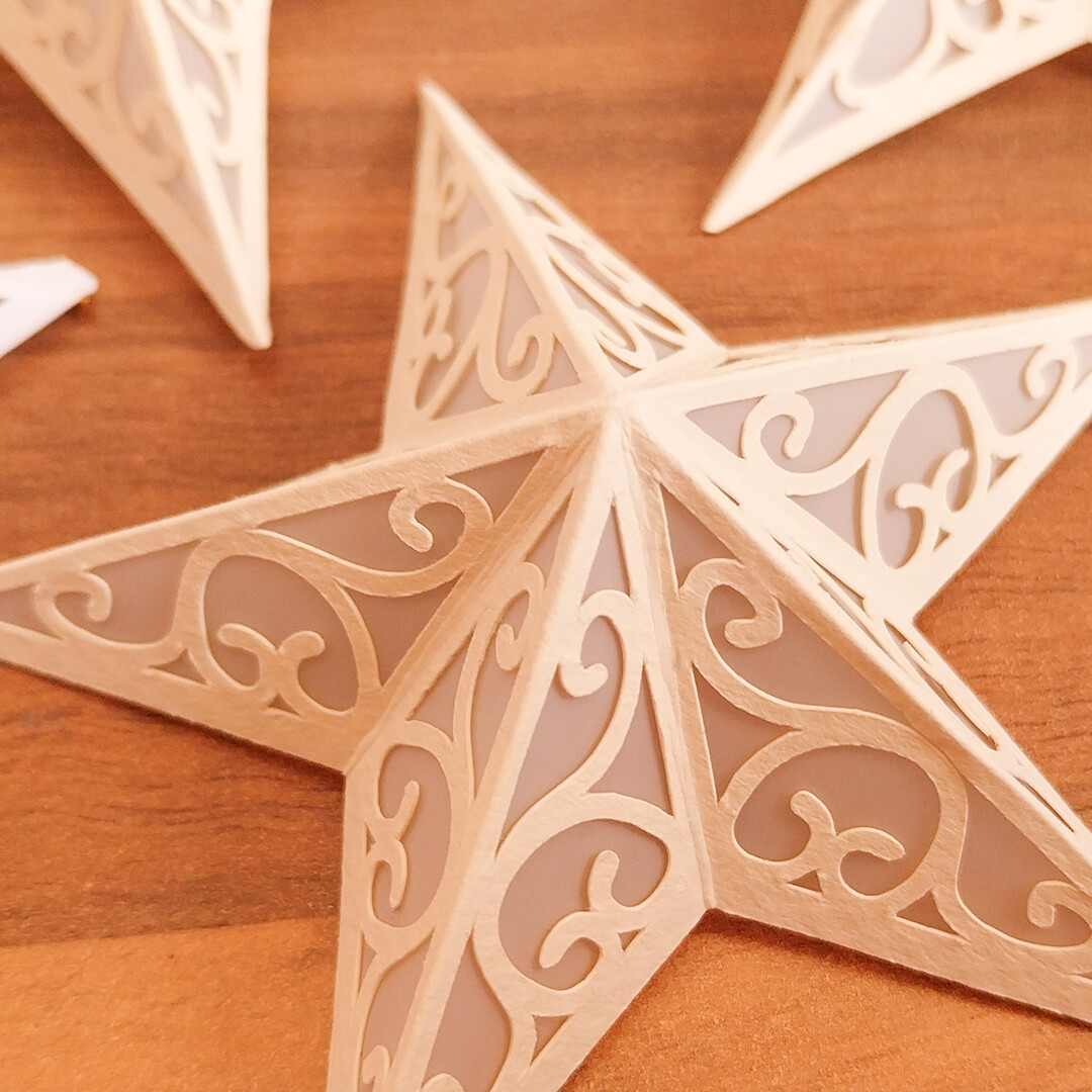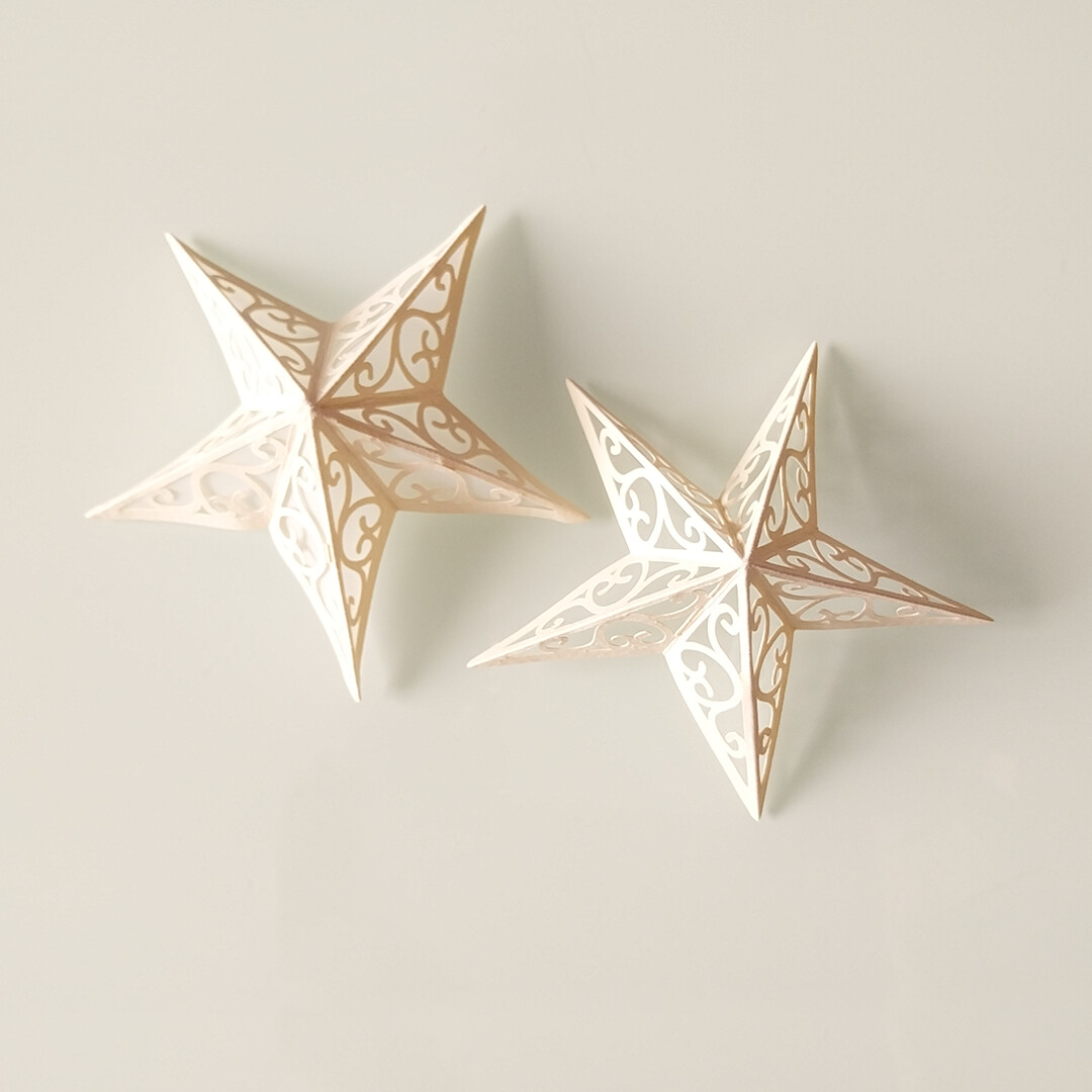 After finishing the first two decorations, I was already imagining a wonderful Christmas tree, but it needed a strong final touch, so I thought of creating a precious star for its apex. When I uploaded the Christmas assets to Idea Studio, I missed having a star that could work for this purpose, but I did not want to create a completely new shape for the decoration. It could feel out of place, so I preferred to make a more elegant version of the same one. That is how I uploaded this new version of the origami star, with a sinuous and slightly arabesque decoration, while still keeping the idea of a star.