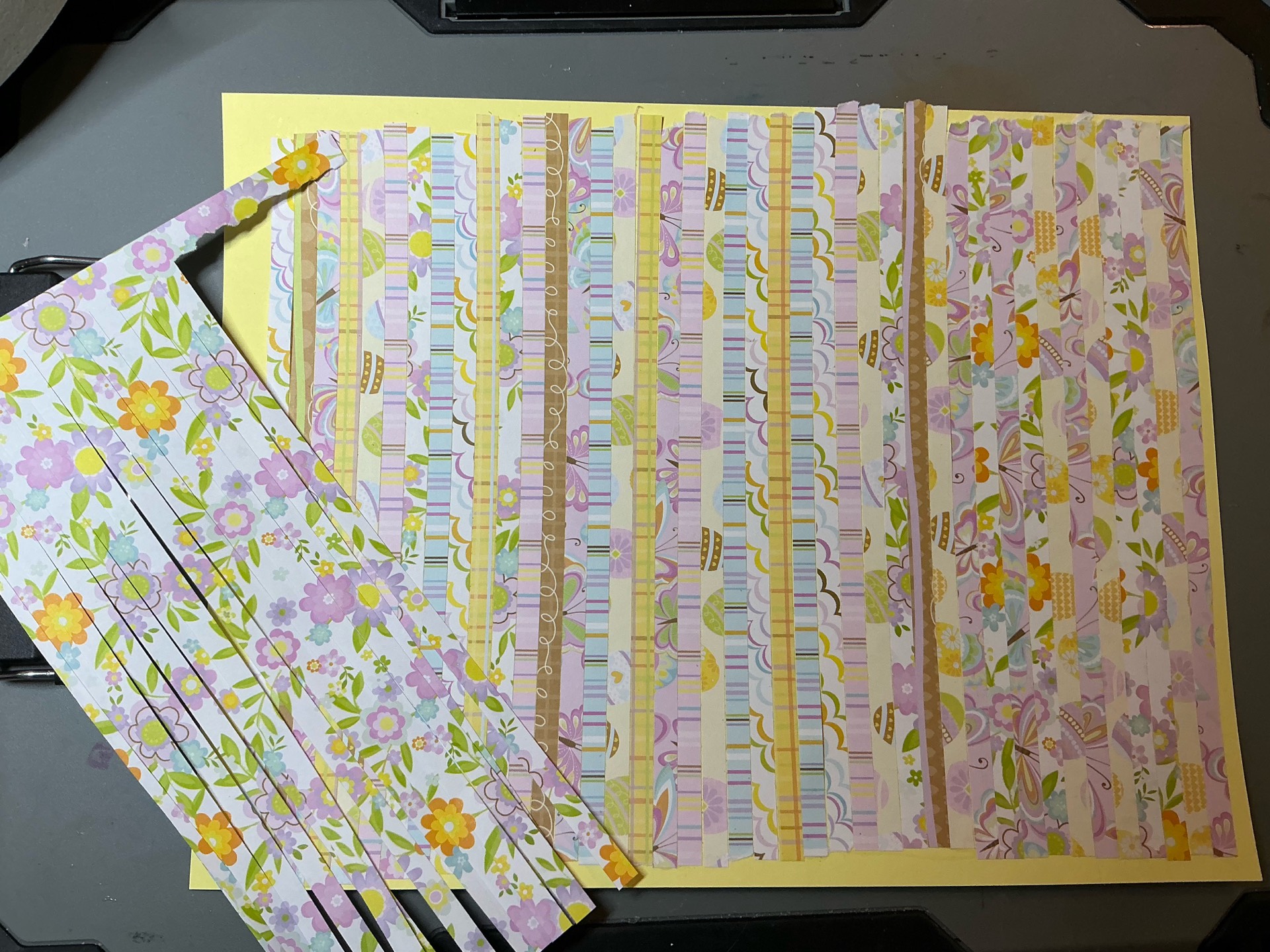 1/4β paper strips were glued onto a sheet of cardstock then the designs were cut out. The card itself is a swing card pattern I have used for years. easy to do and impressive to look at.