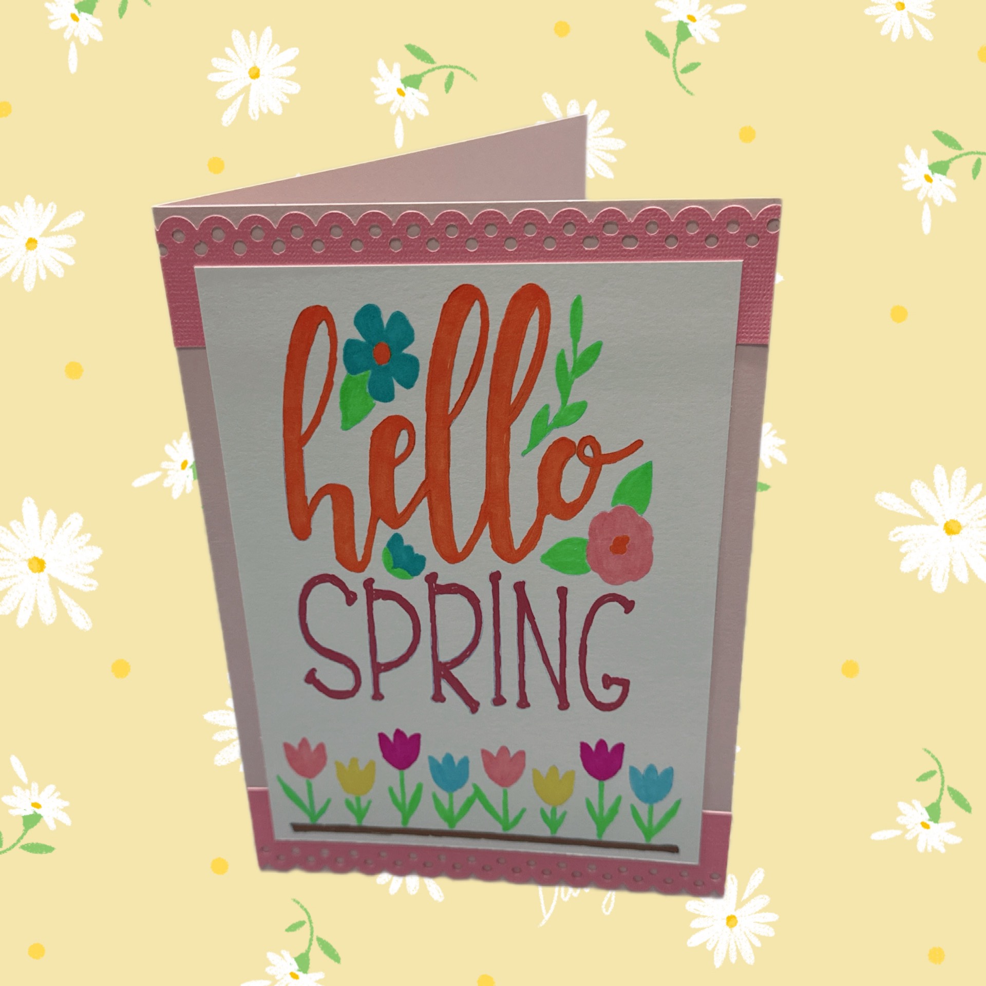 Spring always feels like a fresh breath of hope — that gentle moment when the world starts waking up again. The colors get brighter, the air feels lighter, and everything seems to whisper new beginnings. That’s exactly the feeling I wanted to capture in my Hello Spring card using my iPaint for the first time. With its soft colors, cheerful details along the edge of the cardstock, and that little spark of joy in the design, it celebrates the season of renewal and creativity. It’s my way of welcoming longer days, blooming flowers, and all the inspiration that comes with this beautiful time of year.