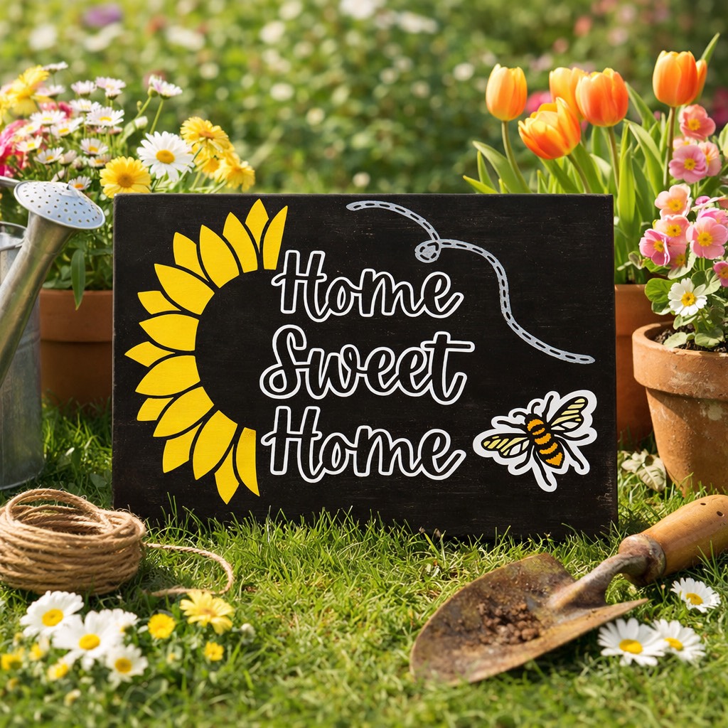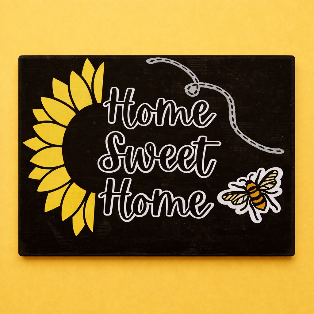 The bee, flowers, and dotted flight path are clean LOKLiK iCrafter vinyl cut designs applied on top for a crisp look.
